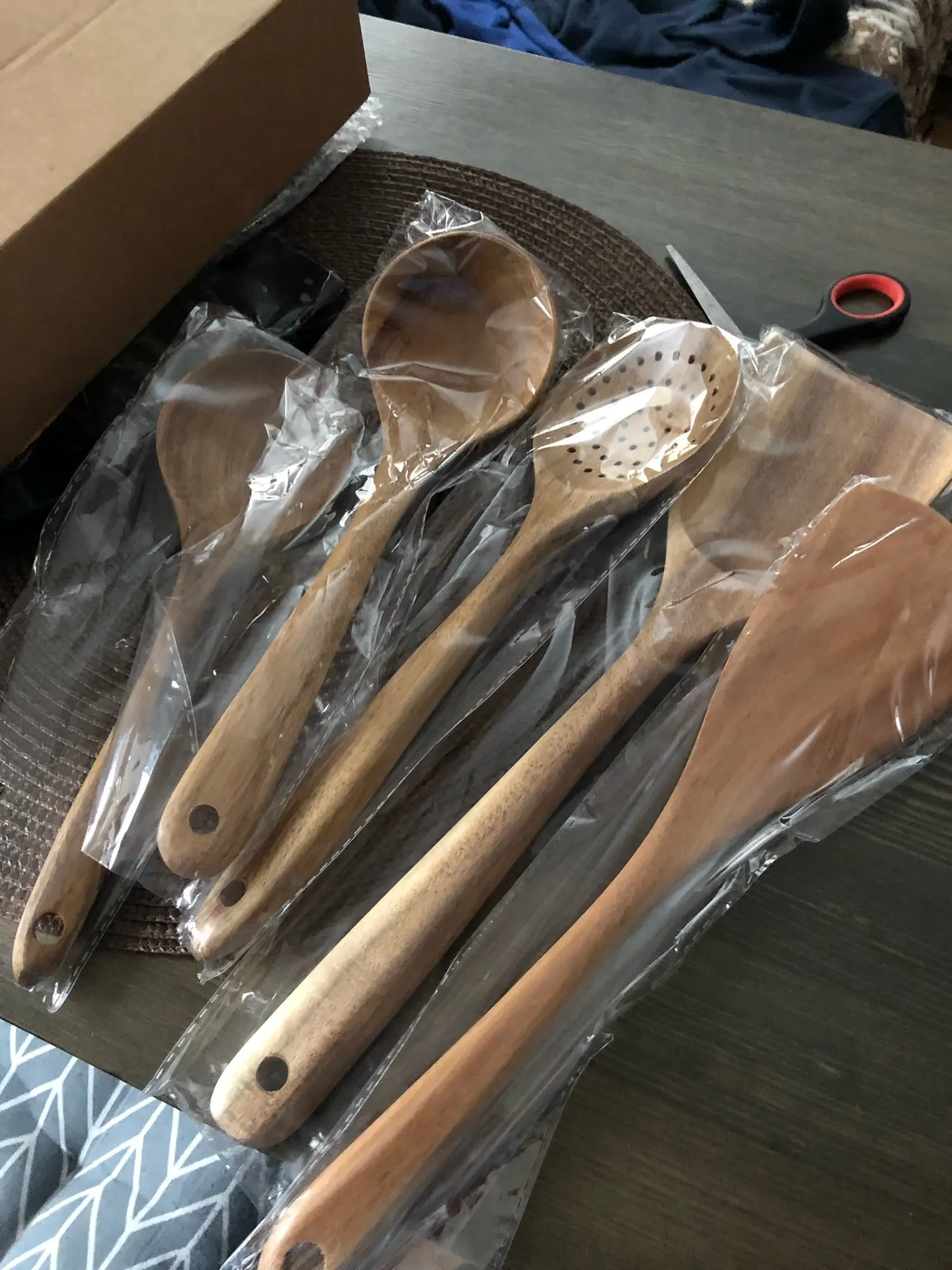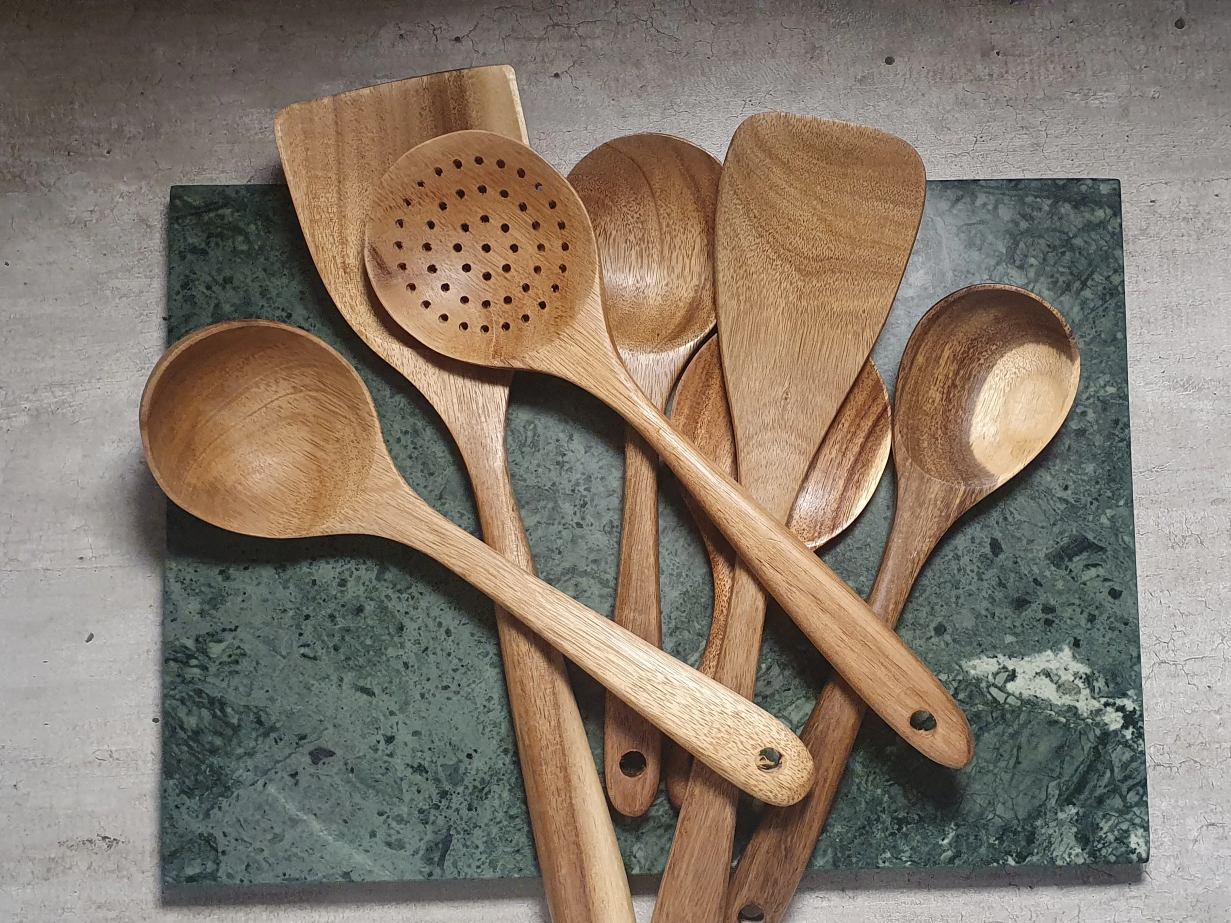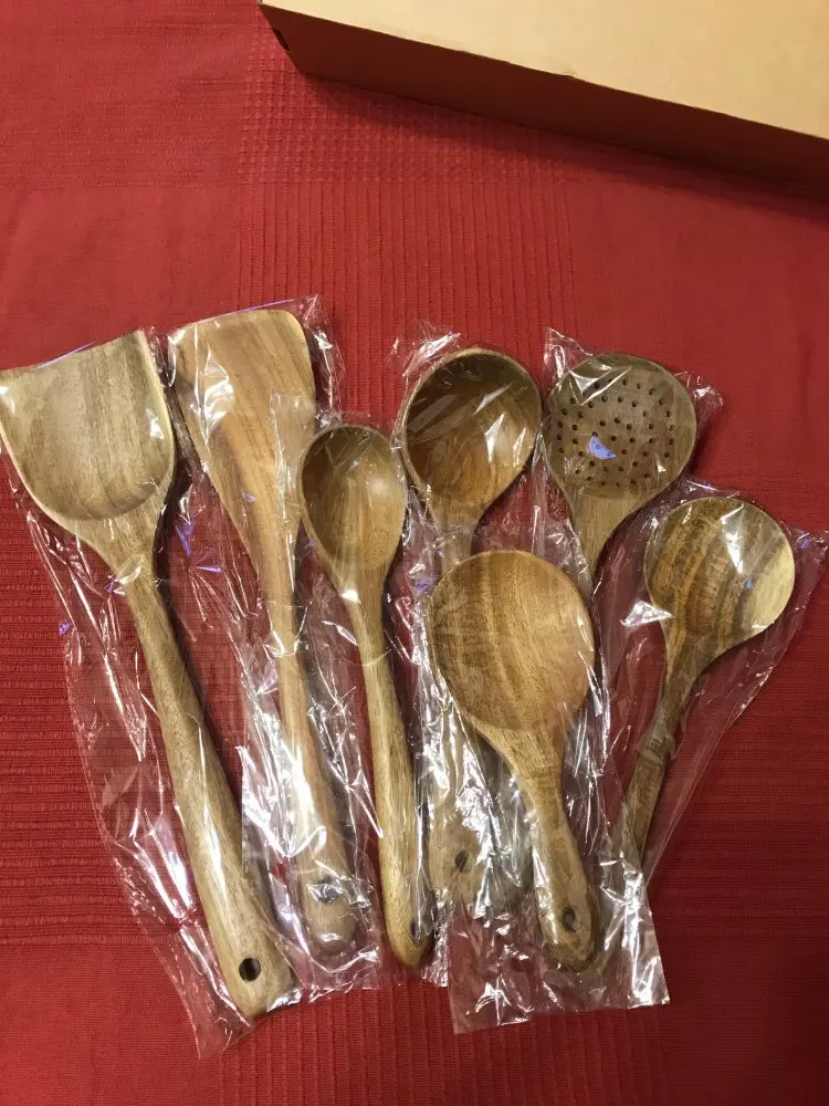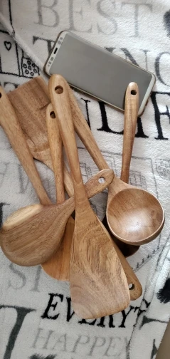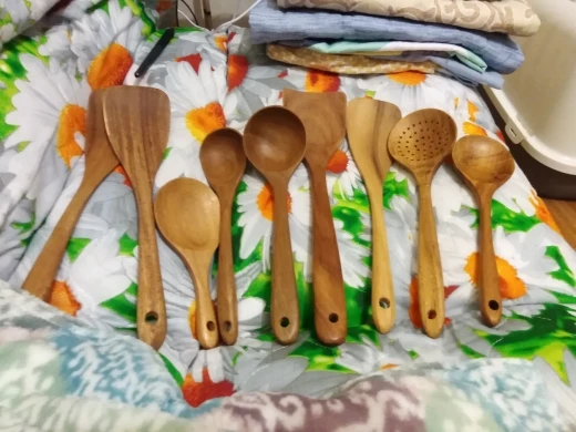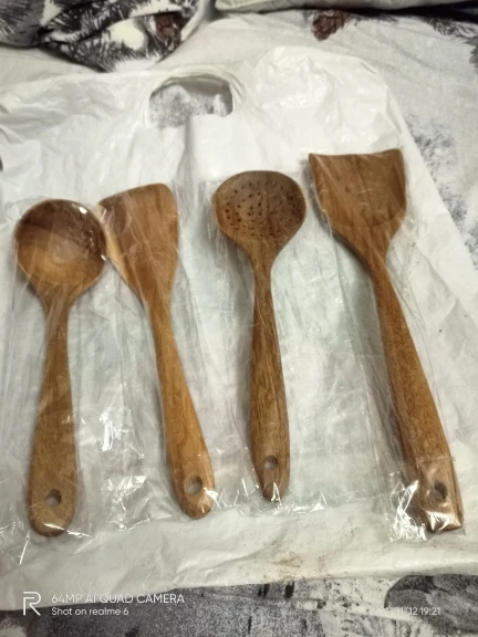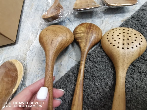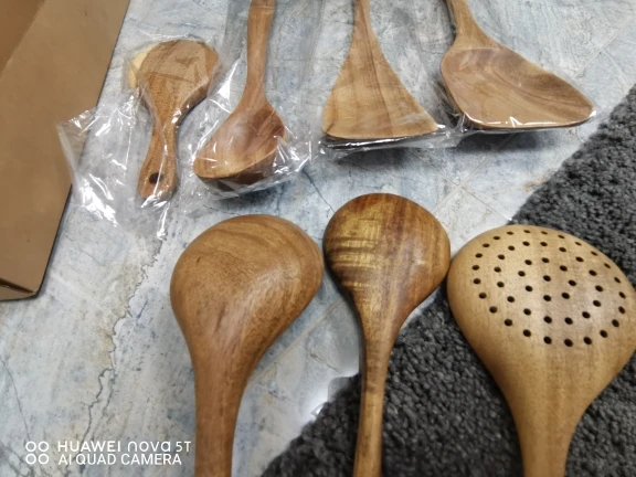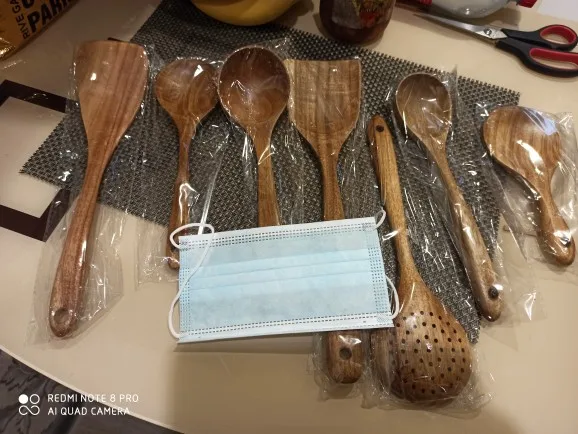 Доставка быстрая. Продавец также быстро отправил товар. Одна ложка из семи с браком. При обработке, шлифовке, сняли слишком много дерева, и ложка стала очень тонкой, как бумага. Пальцем очень легко продавливается. За это четыре звёзды. К остальным предметам претензий нет. После открытия спора, часть затраченной суммы вернули. Продавцу нужно лучше следить за качеством товара перед отправкой. В целом неплохой товар, можно брать.