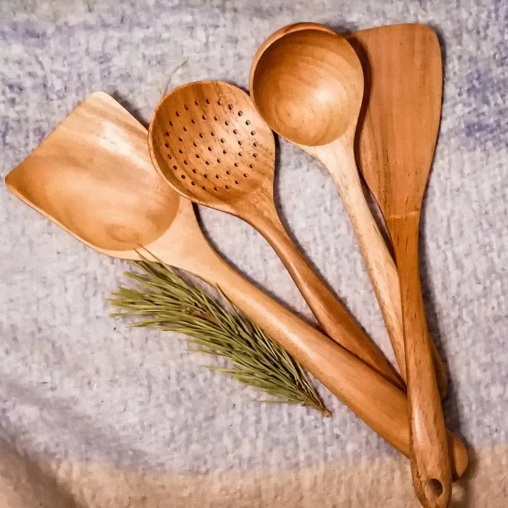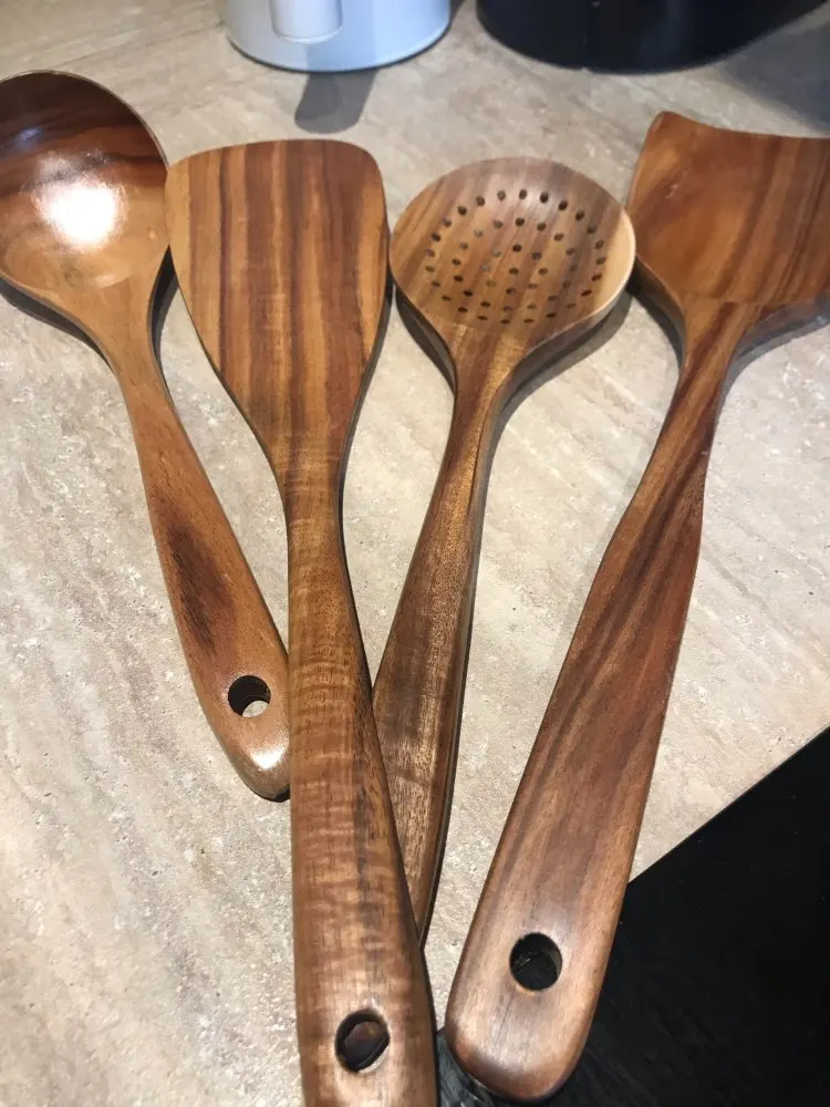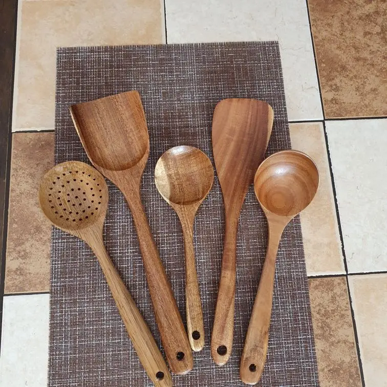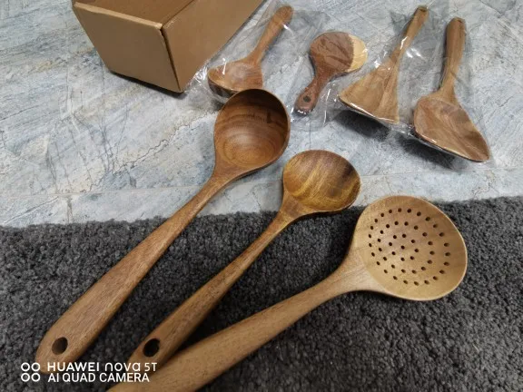Ложка Из Тикового Дерева, 1-7 шт.компл., половник-дуршлаг Специальная Нано-шумовка для супа, деревянный набор кухонных инструментов