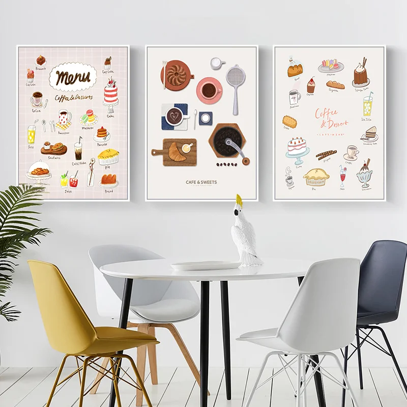 Скандинавский постер для макарон, торта, кофе, пищевых напитков, настенный художественный принт, Картина на холсте, хлебобулочная кухня, интерьерный Декор