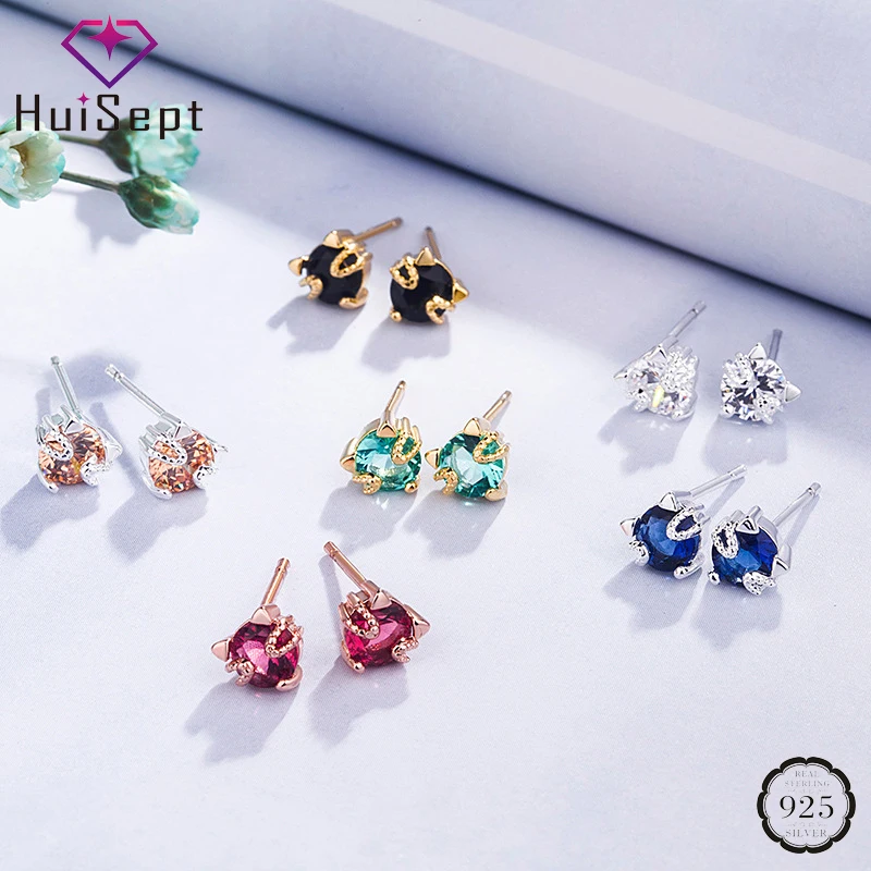 HuiSept модные серьги-гвоздики 925 серебро ювелирные изделия в форме кошки Топаз Циркон драгоценные камни украшения для женщин Свадебная вечеринка оптовая продажа