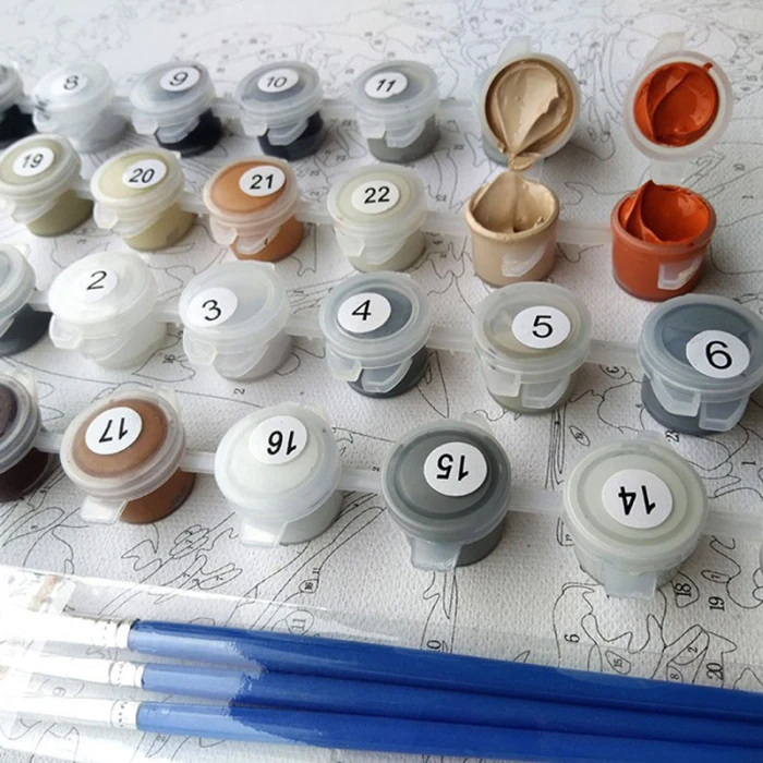 1 шт. x Предварительно напечатанный текстурированный художественный холст 1 набор акриловых красок 3 шт. x кисти