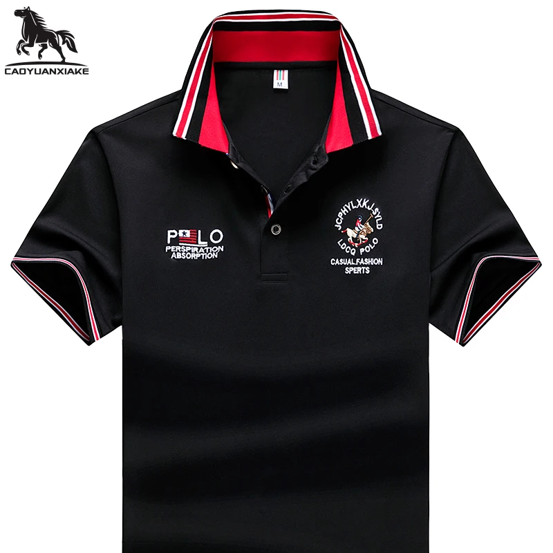 Рубашка-поло мужская из синтетического волокна, с отложным воротником и короткими рукавами