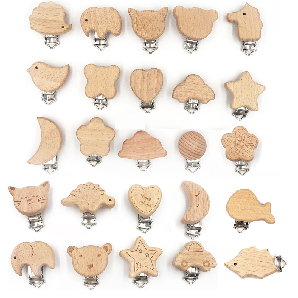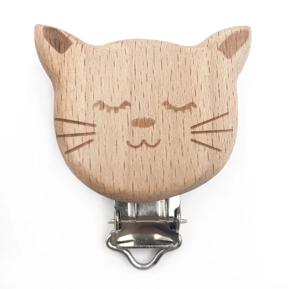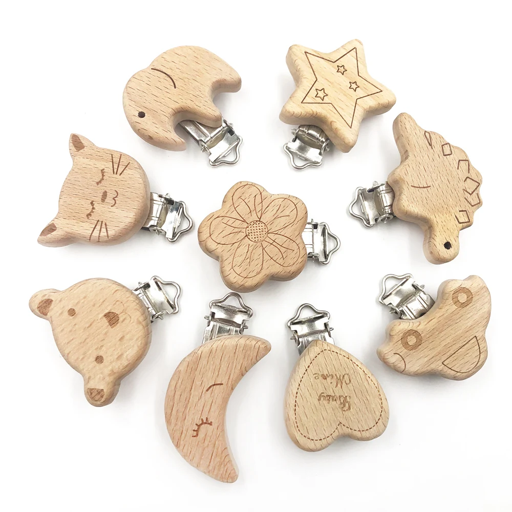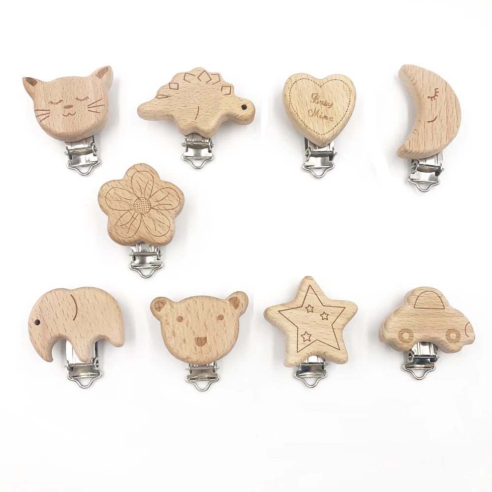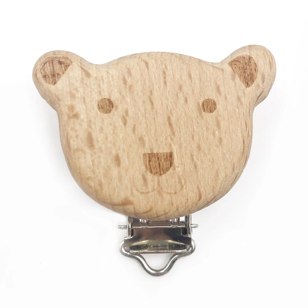 3 шт., деревянные зажимы в виде животных, соска с бусами дюйма, из натурального бука, с деревянными бусинами, для детей, клипсы для пустышек зажимов, цепочка для соски, аксессуар