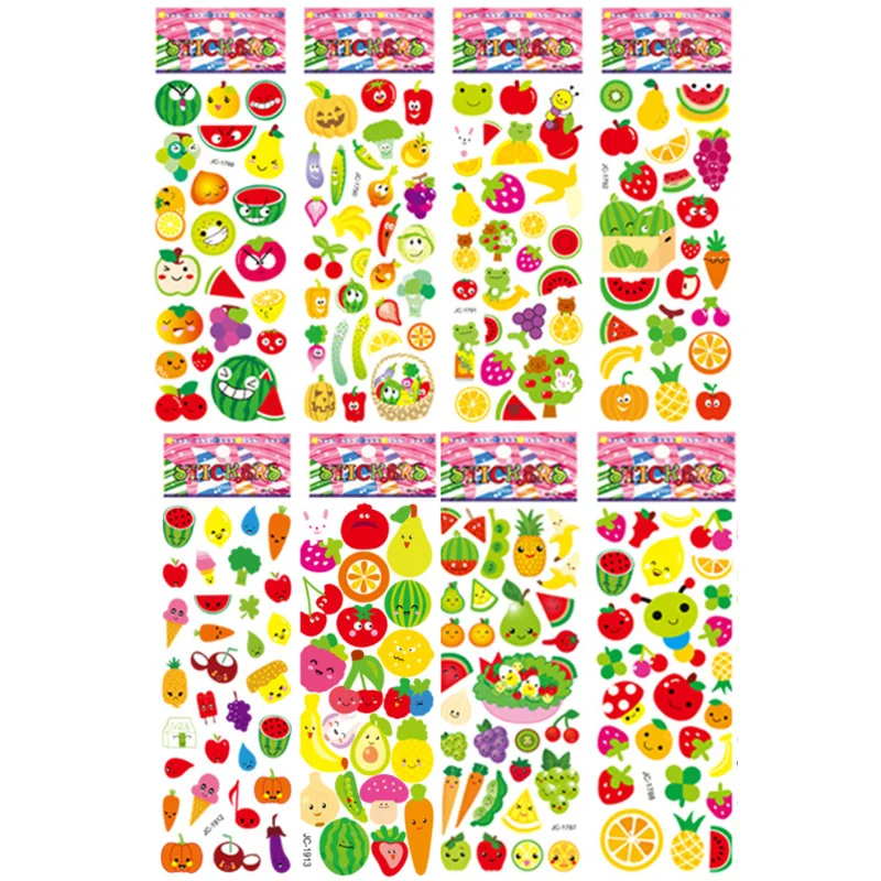8 листовкомплект с изображением мультипликационных персонажей для детей Стикеры для овощей и фруктов DIY альбом для стикеров для рюкзак для садика, Для мальчиков и девочек познавательные игрушки