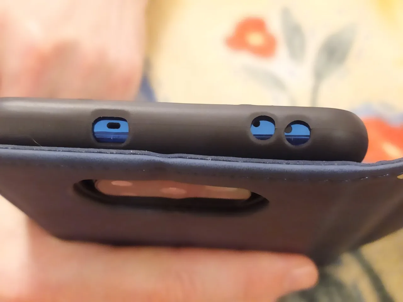 Отверстия для верха не были выровнены должным образом, но не повлияли на производительность телефона. Хорошая кожа и застежка намного лучше, чем купленные мной ранее чехлы.