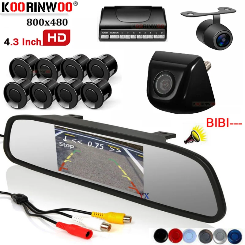 Полный комплект датчиков для парковки Koorinwoo, Автомобильная камера заднего вида с 8 фронтальными и задними датчиками и дисплеем, детектор для слепых зон