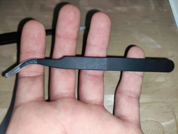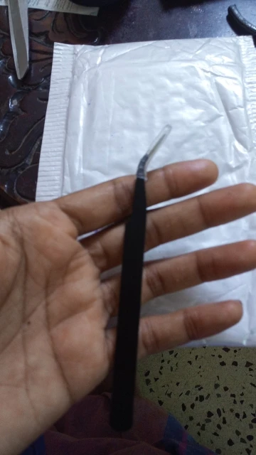 Хороший,достаточно крепкий пинцет,отличная цена,быстрая доставка.