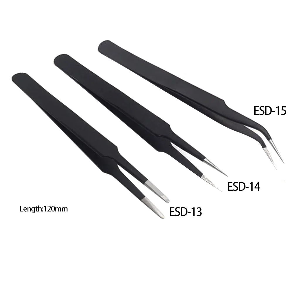 Пинцет для пайки, ESD-13, ESD-14, ESD-15, антистатический, с изогнутыми прямыми кончиками