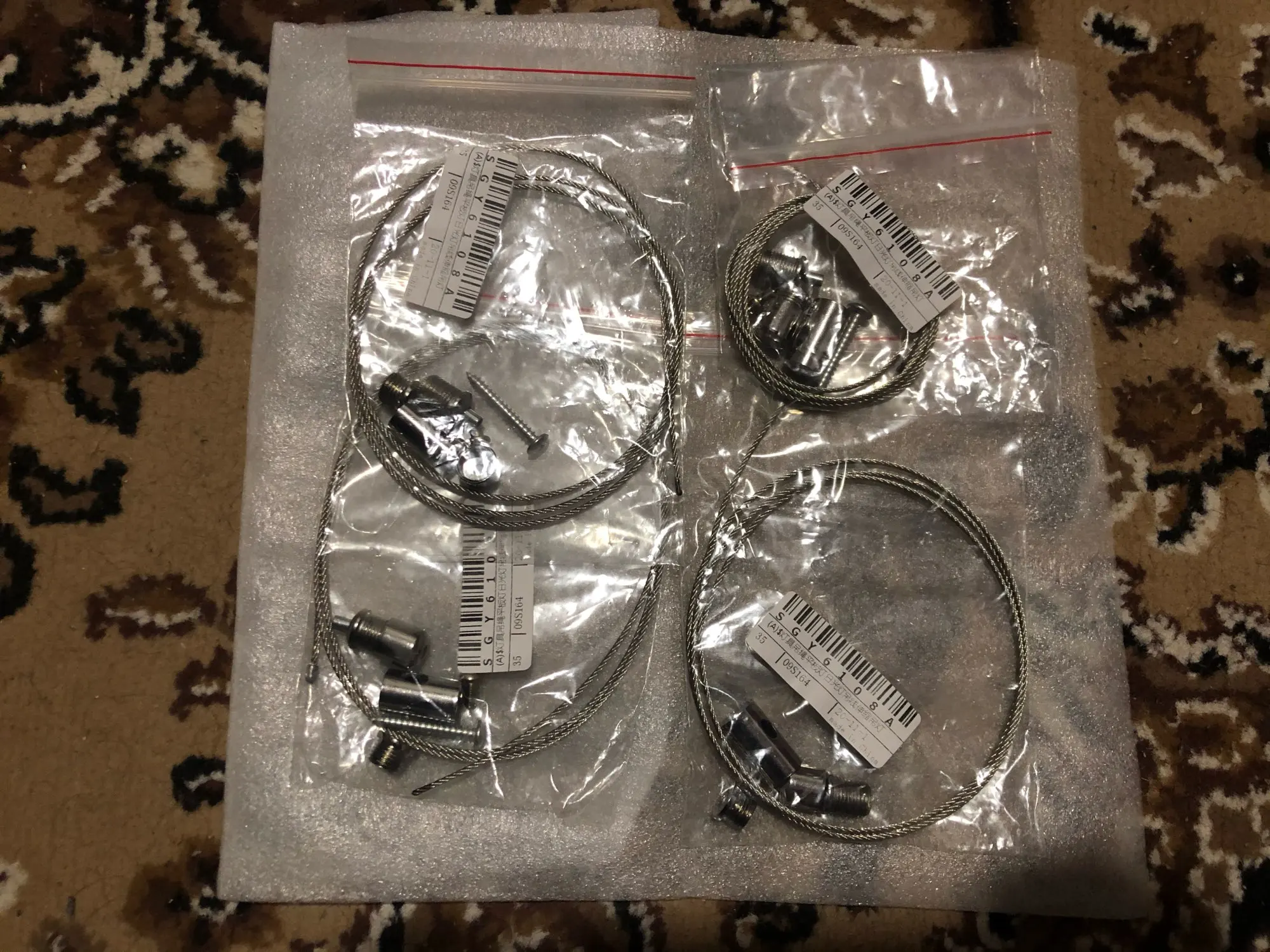 на картинке 4 штуки а по факту 1 комплект. теперь ещё 2 месяца ждать. забил, пошел в Леруа тросик купил.
