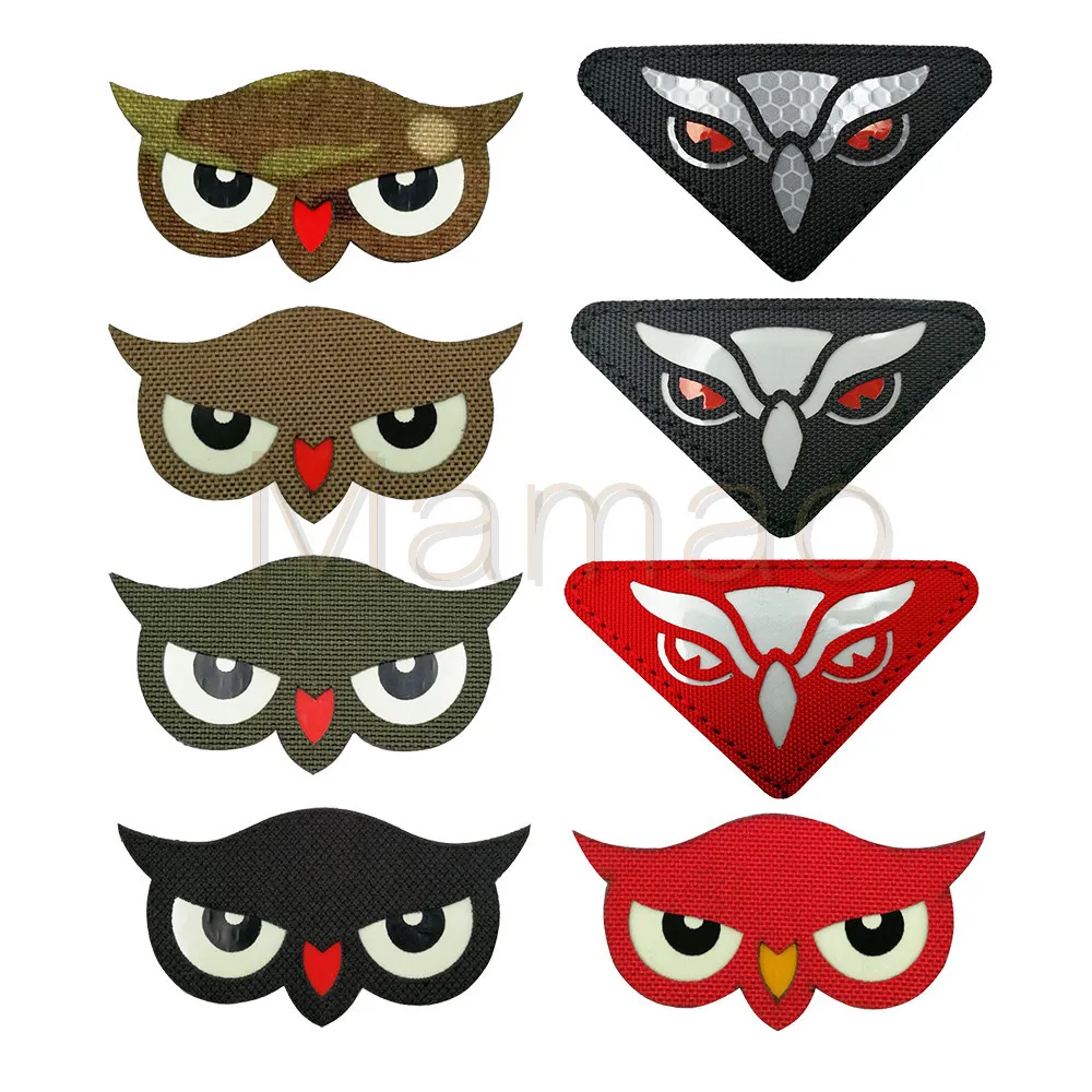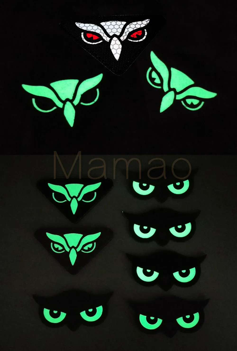 Сова головы Совы глаза отражающей ИК-патч светятся в темноте черного цвета в стиле кошачий глаз Тактическая Военная армейская мотоциклетный Байкерский патч