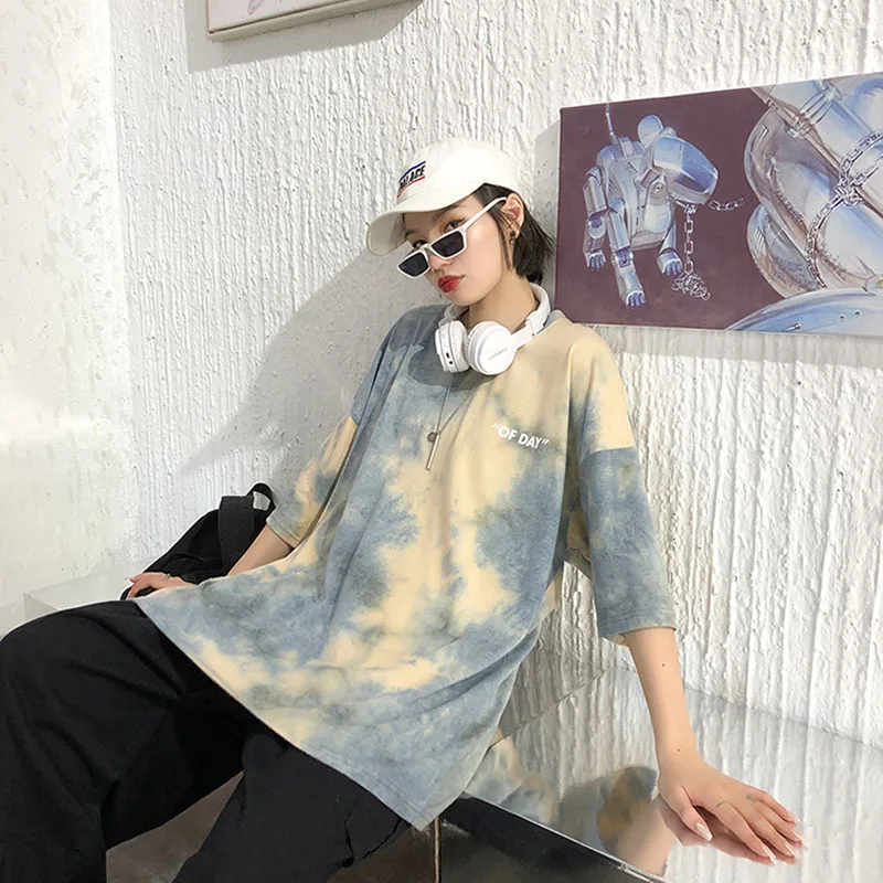 Женская футболка с принтом тай-дай, летняя футболка с круглым вырезом и коротким рукавом, в стиле Харадзюку