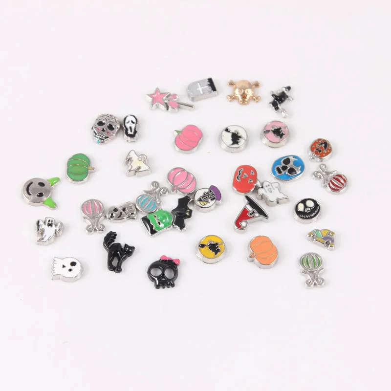 Случайные Смешанные Хэллоуин плавающие талисманы эмалевые ЧЕРЕПА черная кошка ведьма талисманы для летающей памяти живая фантазия дропшиппинг