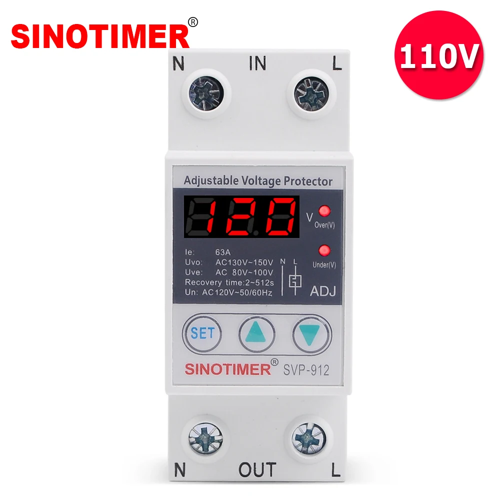 Реле напряжения на DIN-рейку, устройство защиты от перенапряжения под напряжение, регулируемое вручную, 110 В, 120 В, 63 А, автоматический переключатель