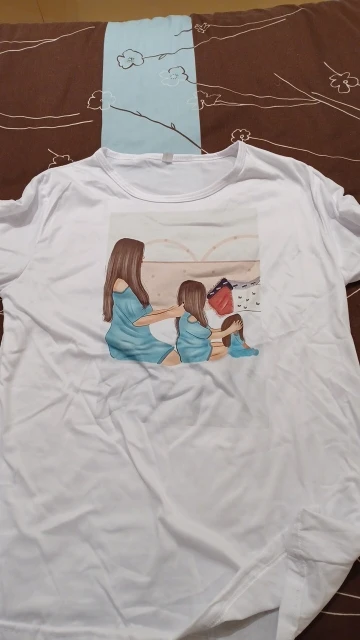 Майка неплохая, но я ожидала, что ткань будет чуть поплотнее, т.к. заказывала подобную. Идёт в размер! Xl на российский 46-48. Либо 46 с бюстом от размера 3, примерно))) на 44-46 сидит свободно и ооочень большие рукава (на фото видно). Рукав не такой, как на фото продавца! Думала, что модель с припущенным, потому взяла на размер больше, чтоб была свободной. Но это обычная футболка))) ну... Не критично. На дачу гонять пойдёт!