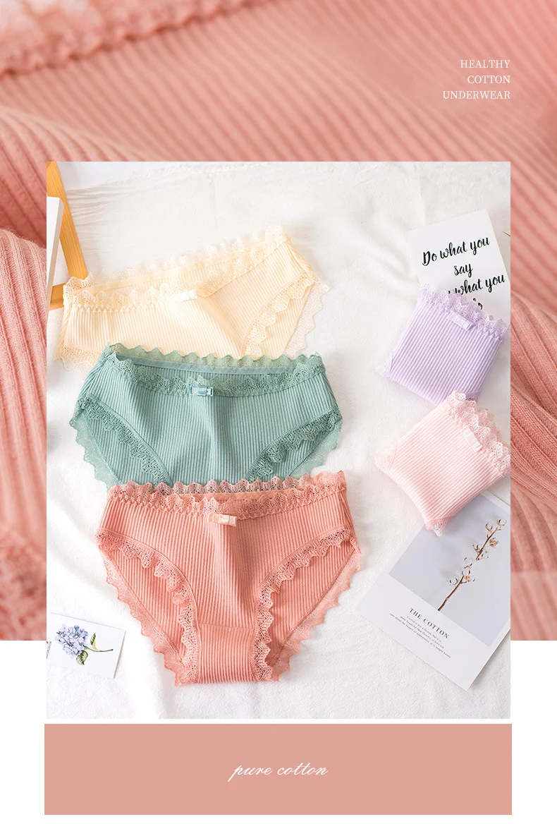 Трусики женские хлопковые кружевные дышащие, сексуальное нижнее белье