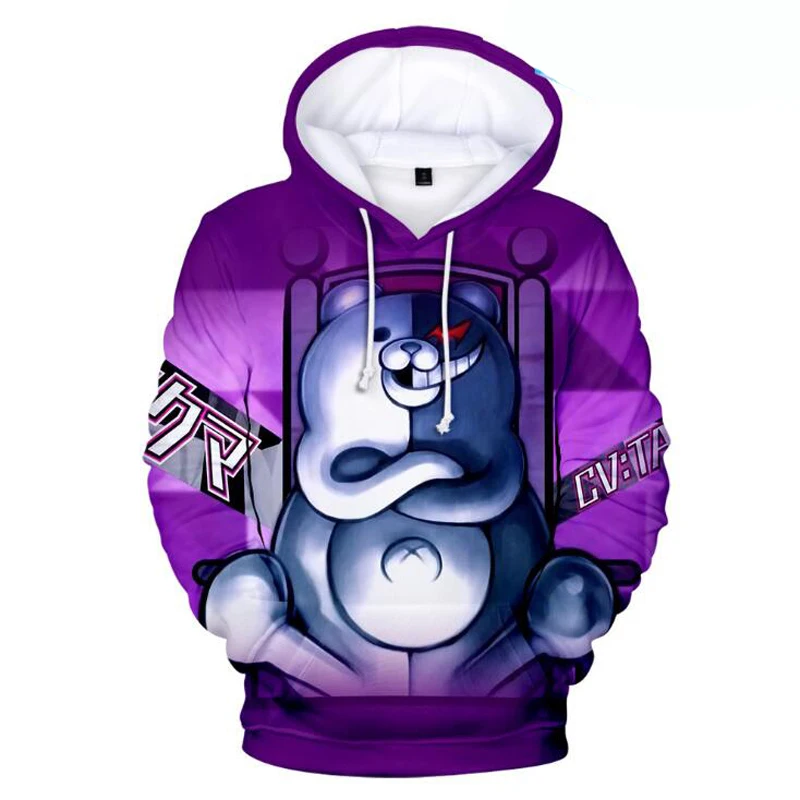 Мужские толстовки с 3D-принтом аниме Danganronpa Monokuma, черный, белый медведь, пуловер с длинным рукавом, куртка с капюшоном, косплей, костюм