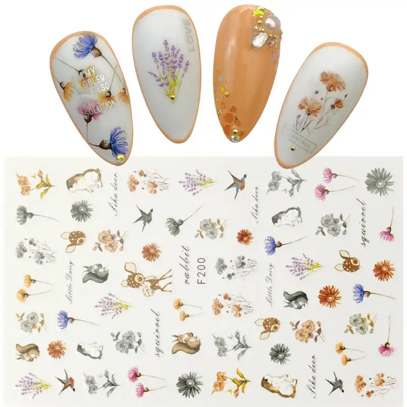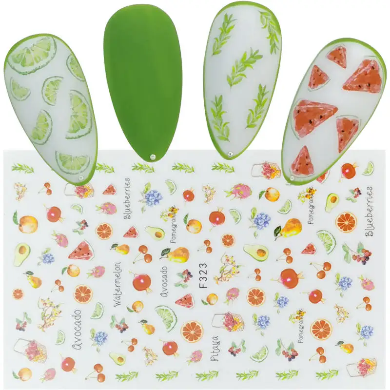 1 лист, 3D наклейки для ногтей, клейкие наклейки, цветы, листья, геометрия, фрукты, десерт, дизайны, слайдеры, тату, маникюрные украшения