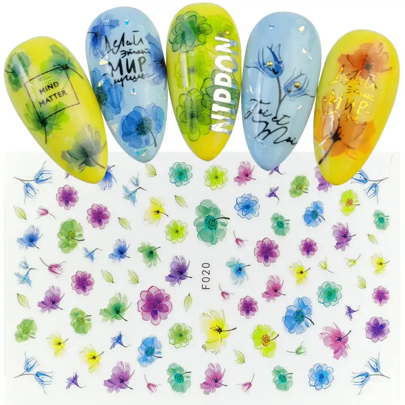 1 лист, 3D наклейки для ногтей, клейкие наклейки, цветы, листья, геометрия, фрукты, десерт, дизайны, слайдеры, тату, маникюрные украшения