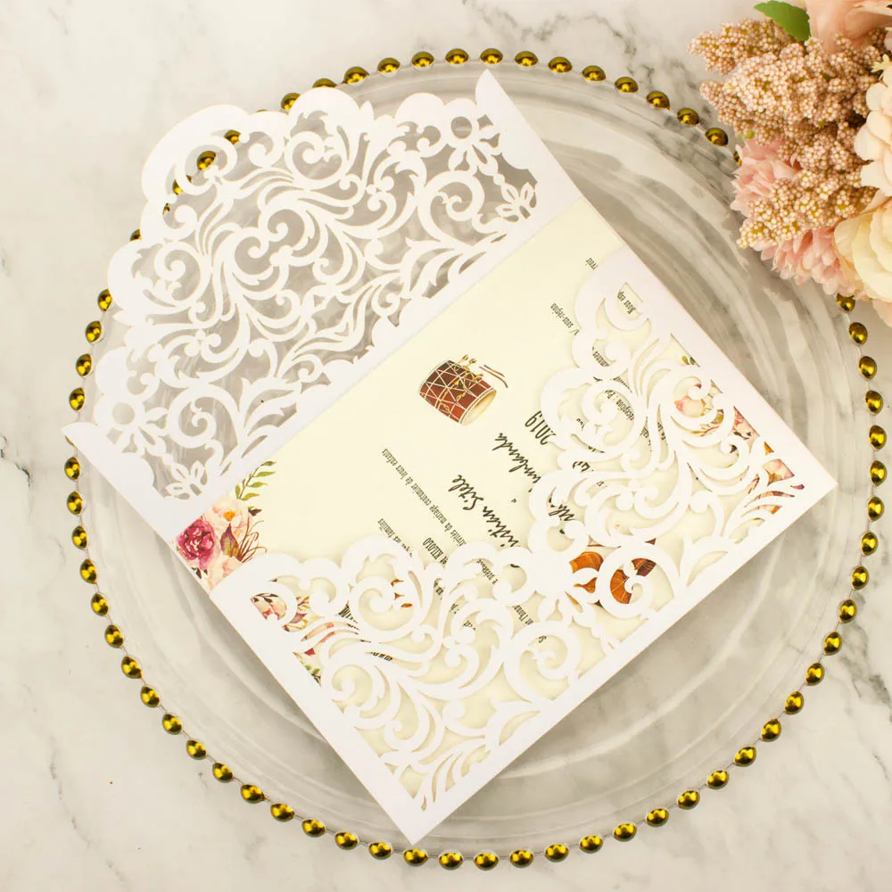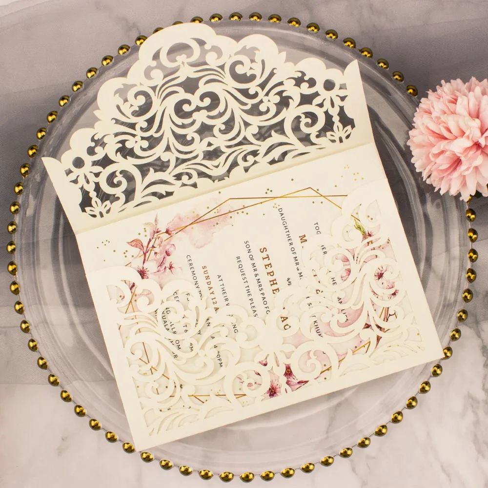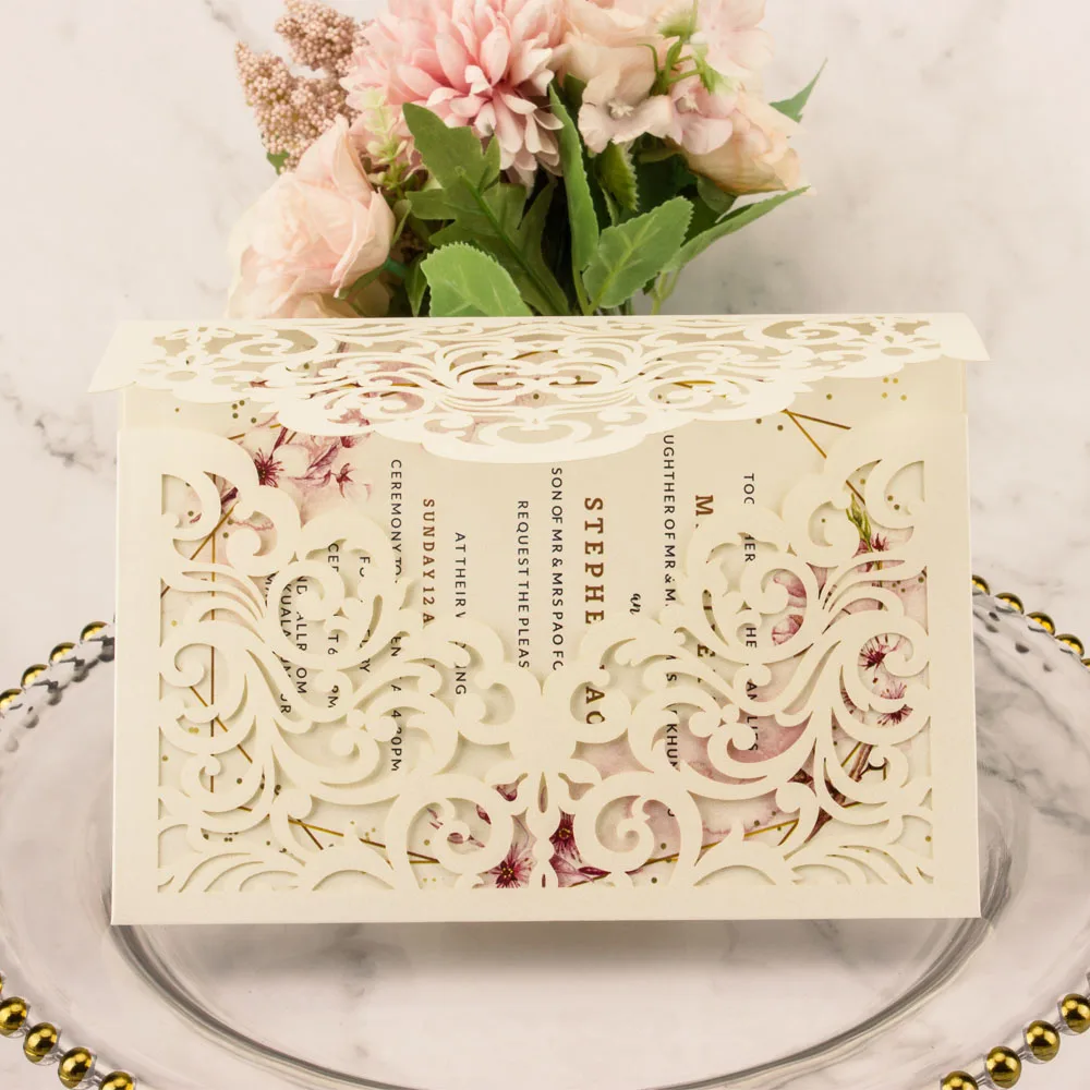 1 шт., образец, бесплатная доставка, полый лазерный разрез, свадебные приглашения, карты для свадьбы, помолвки, свадебный душ, день рождения, поставщик