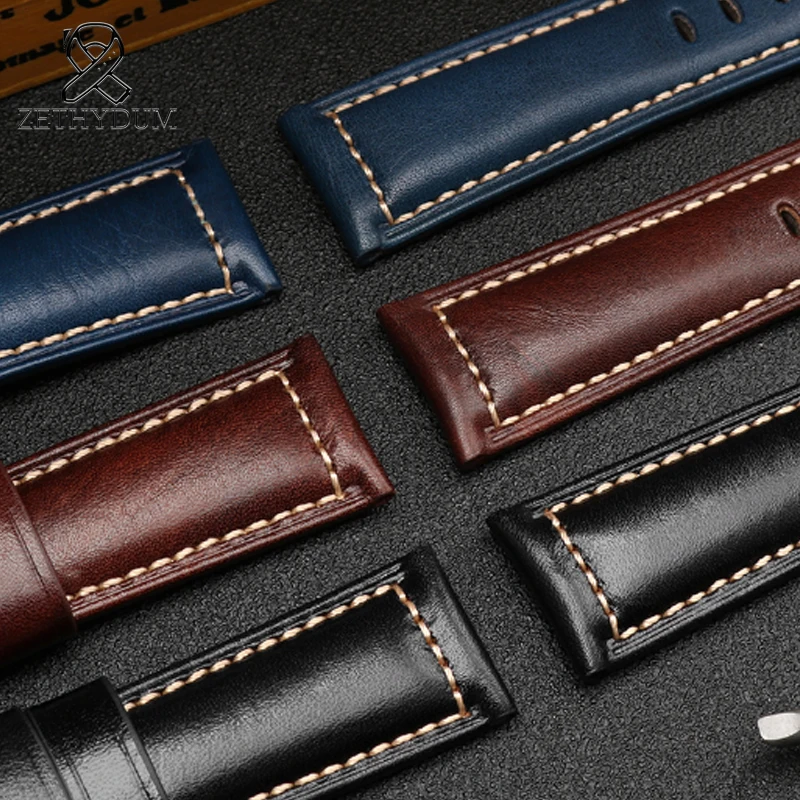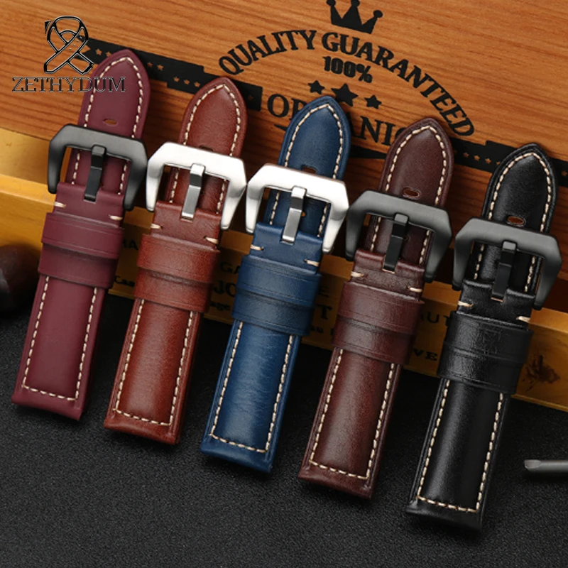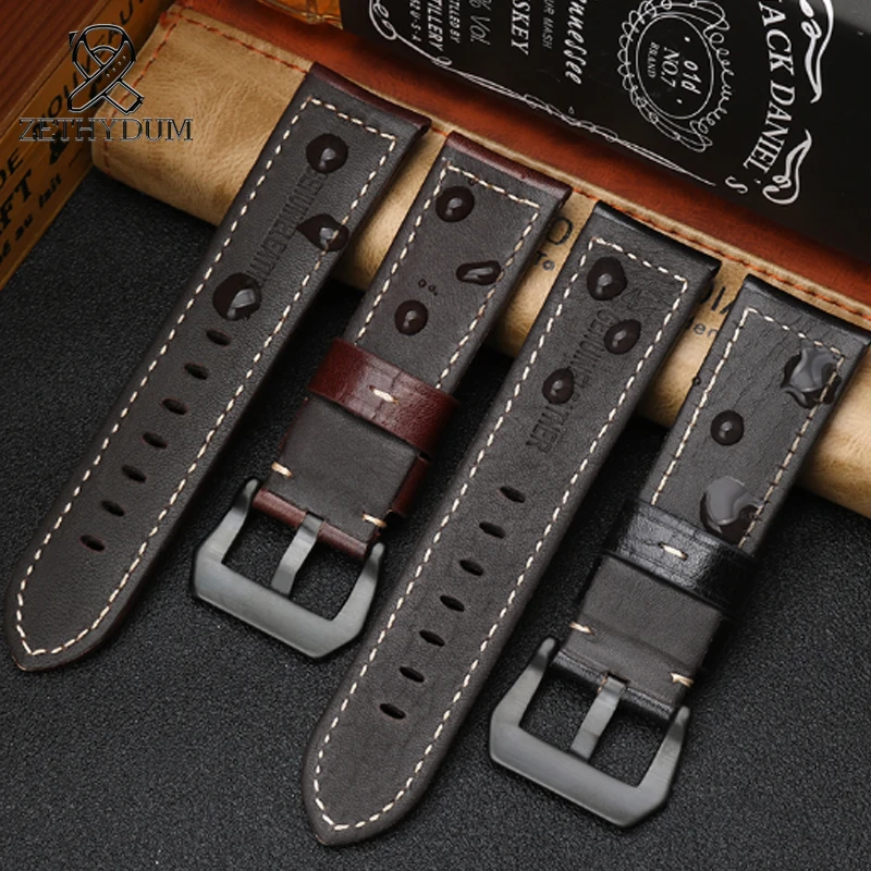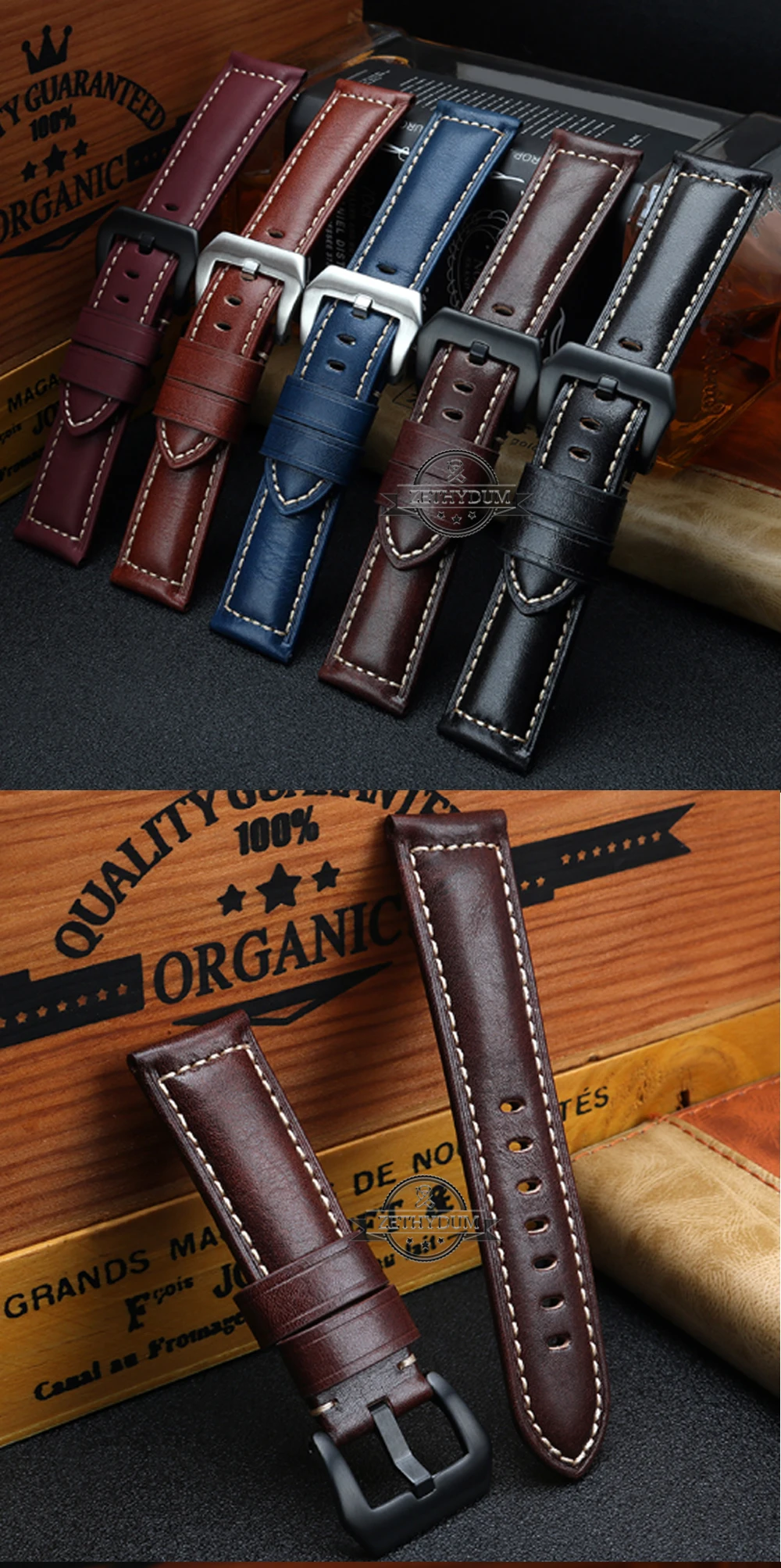 Ремешок ручной работы из натуральной кожи в винтажном ретро-стиле для часов Panerai 22 24 26 мм, аксессуары ручной работы, кожаный ремешок для часов с прямым концом