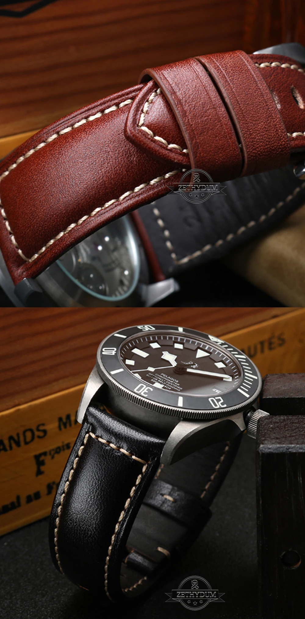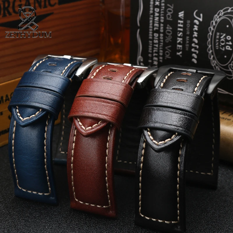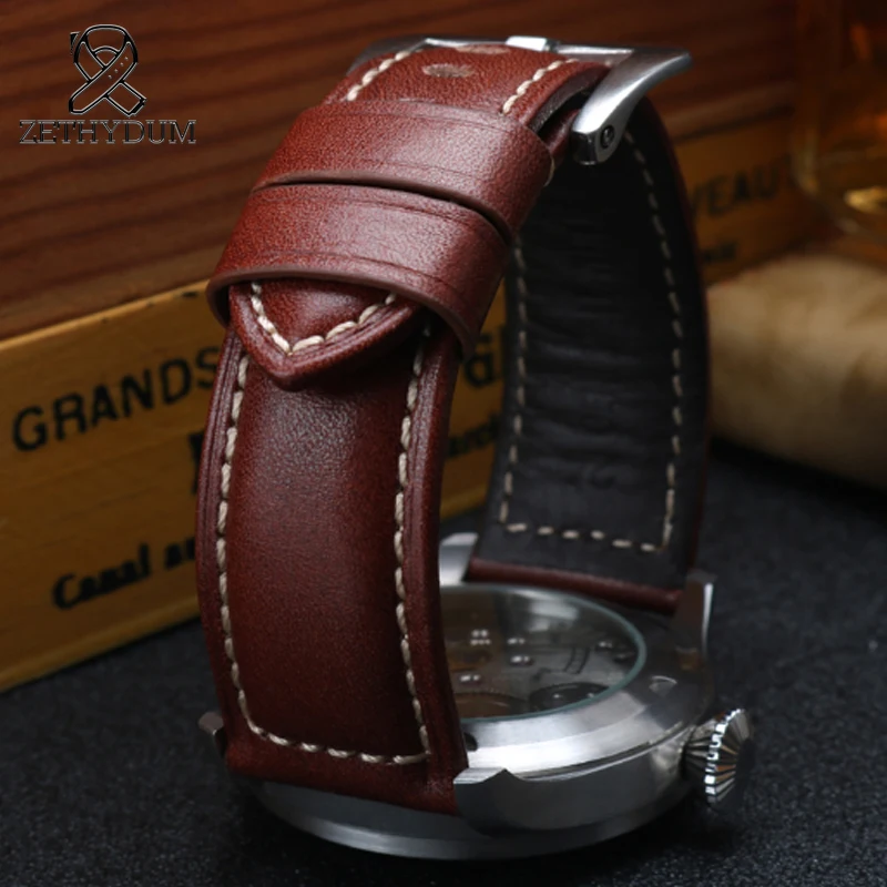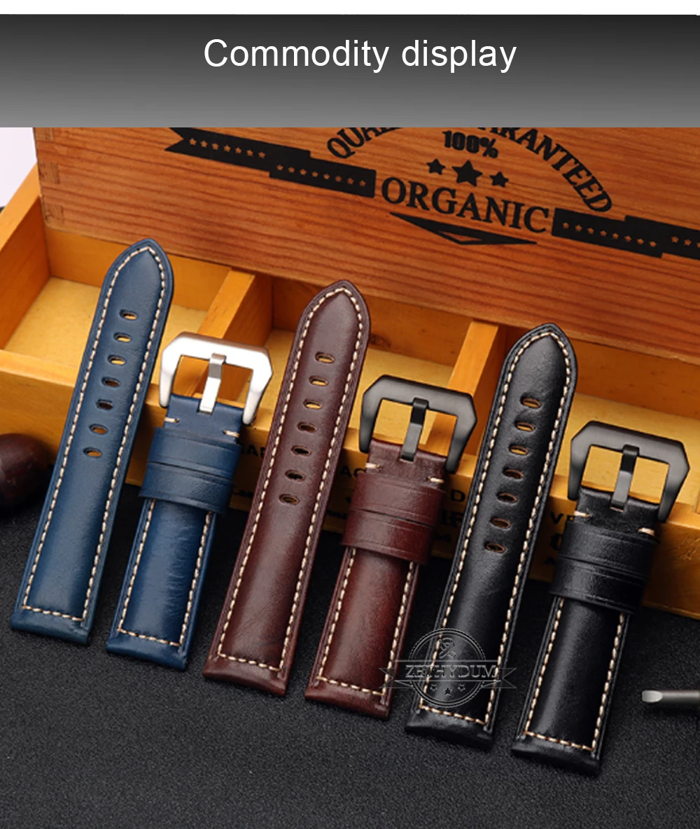 Ремешок ручной работы из натуральной кожи в винтажном ретро-стиле для часов Panerai 22 24 26 мм, аксессуары ручной работы, кожаный ремешок для часов с прямым концом