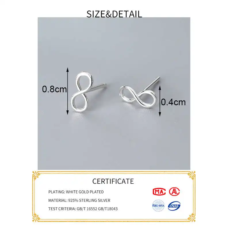 Серьги-гвоздики женские из серебра 925 пробы, с символом бесконечности