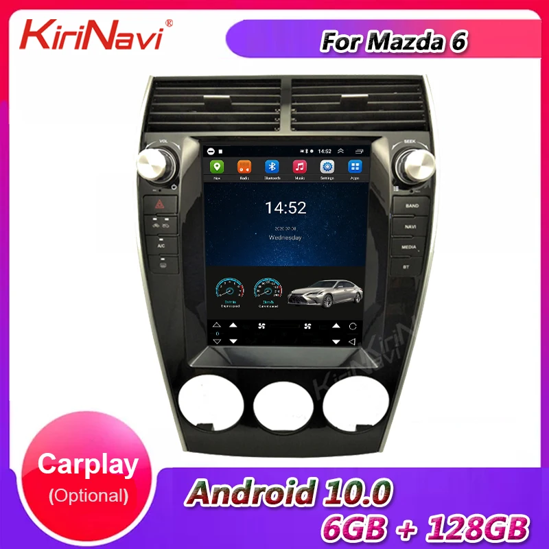 Вертикальный экран KiriNavi Tesla Style 10,4 "1Din Android 10,0 автомобильное радио для Mazda 6 стерео автомобильный DVD мультимедийный плеер 4G