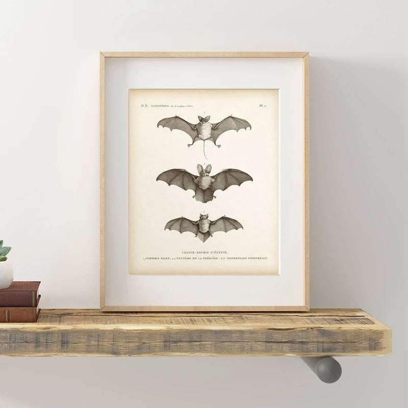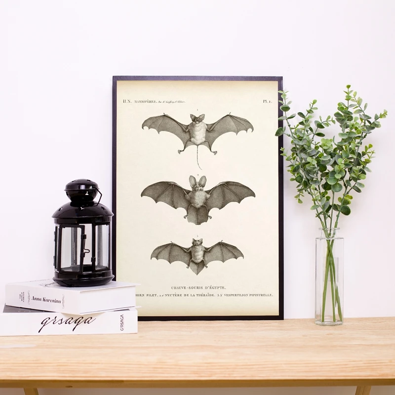 Винтажный принт Летучая Мышь Хэллоуин Настенная живопись холст Античная летучая мышь животное плакат Настенная картина для гостиной украшение дома