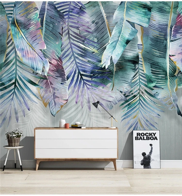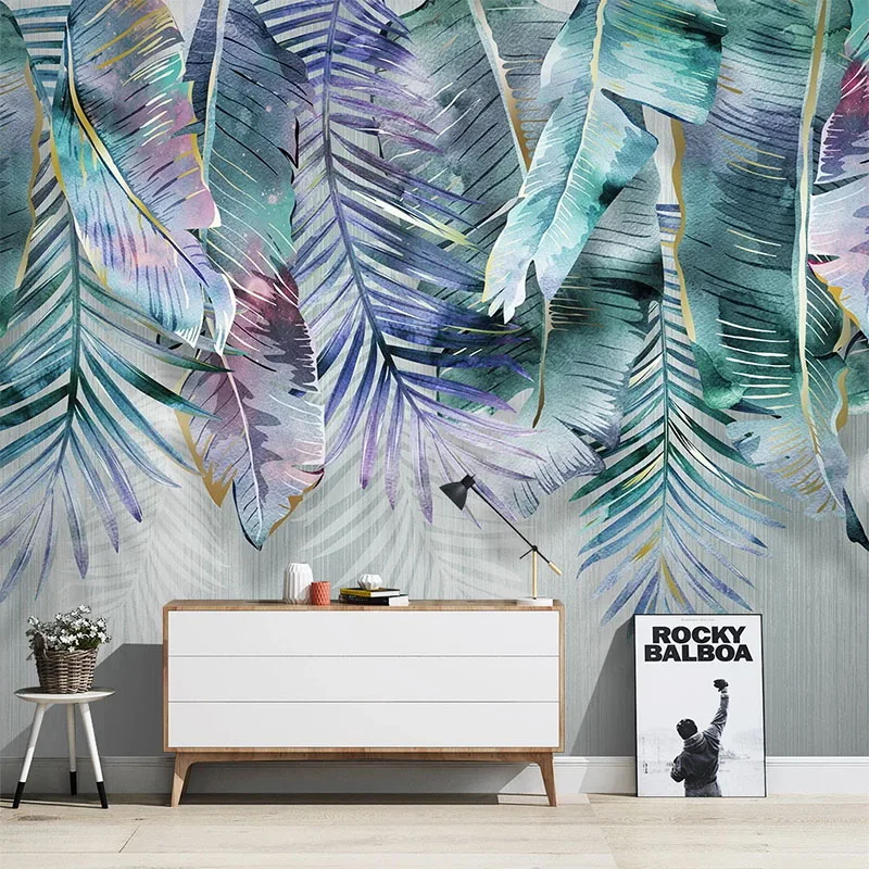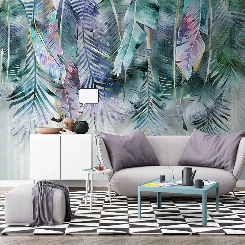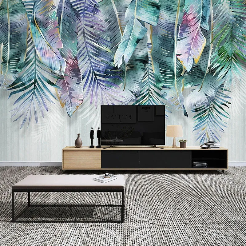 Самоклеящиеся фотообои на заказ, водонепроницаемые 3D фотообои с изображением тропических растений, листьев, для гостиной, спальни, телевизора
