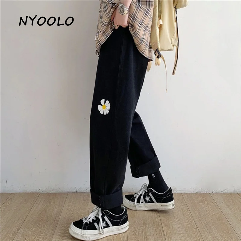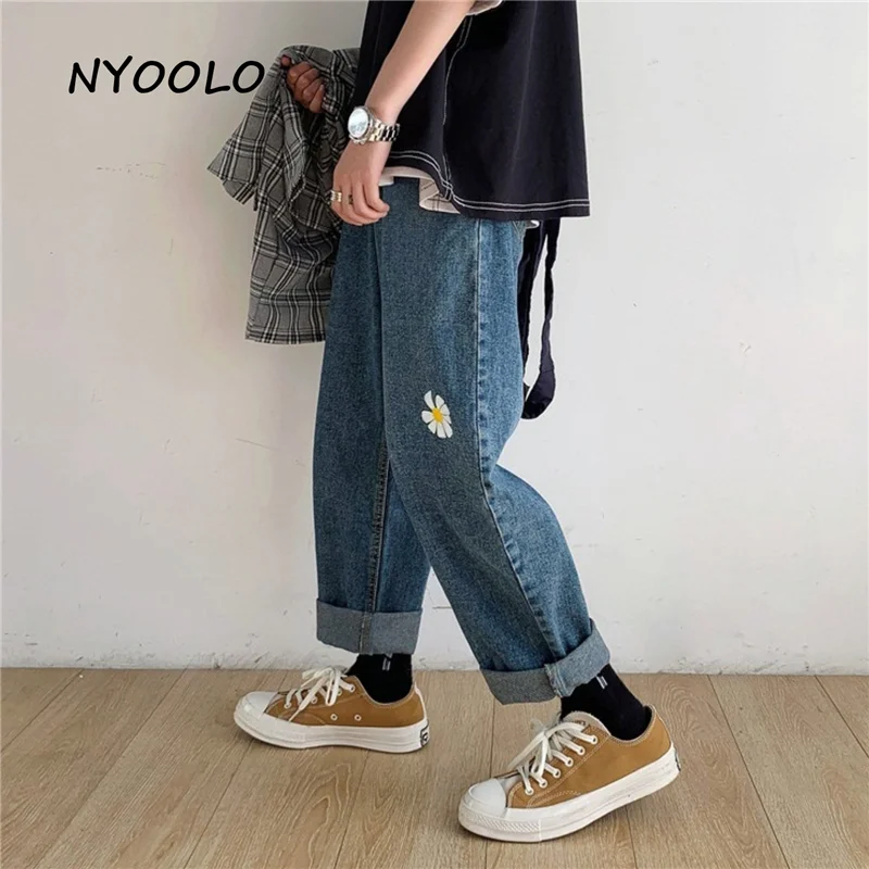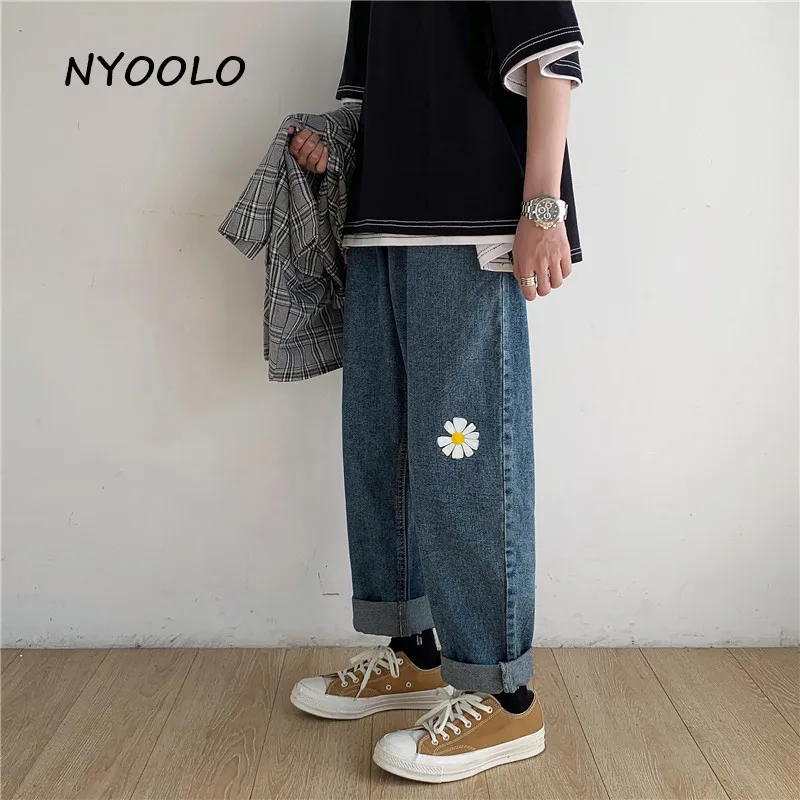 Джинсы NYOOLO женские и мужские винтажные, уличная одежда с принтом маргариток, вареные джинсы, свободные брюки из денима до щиколотки, прямые, лето