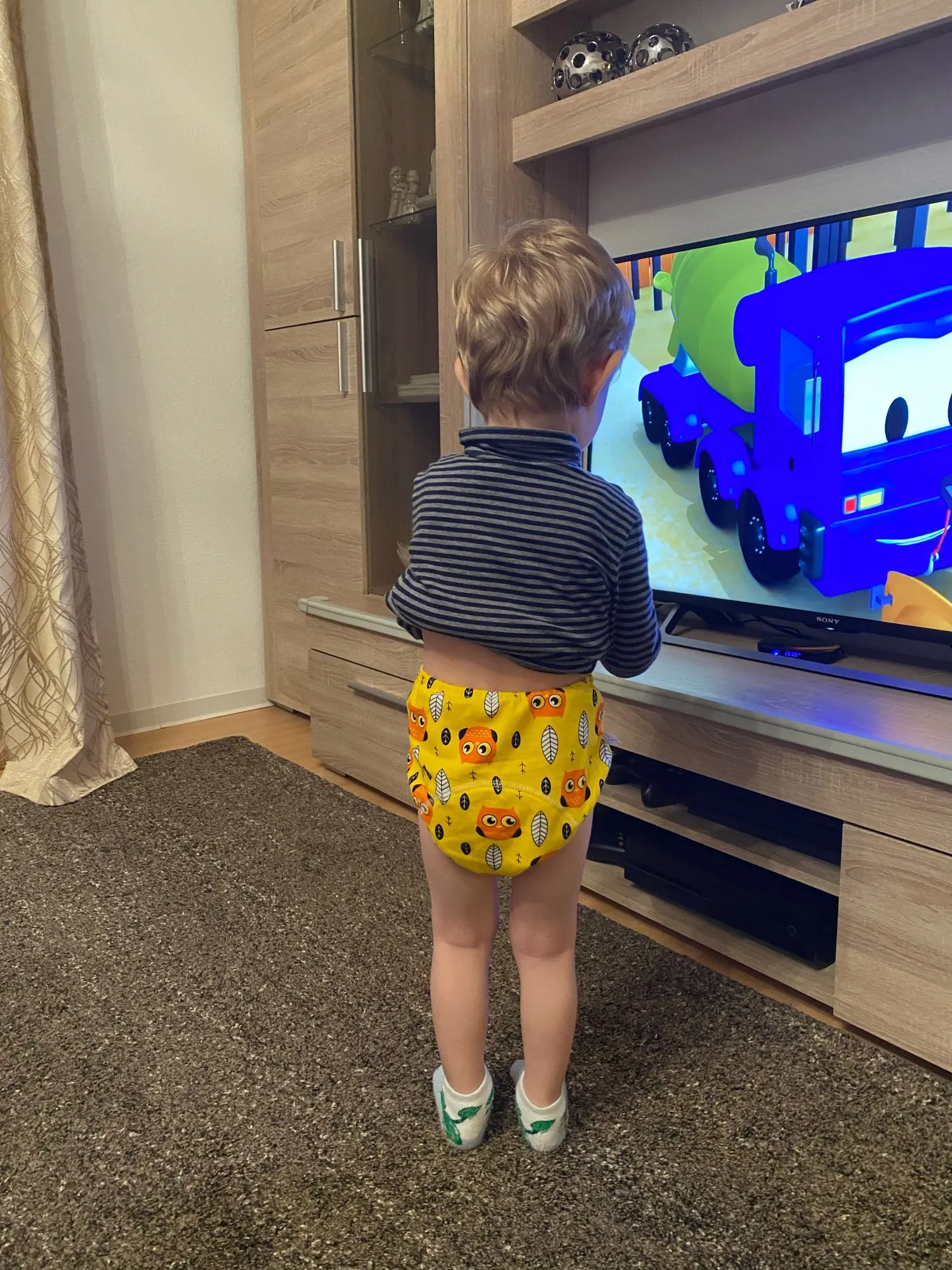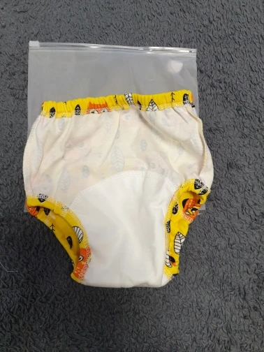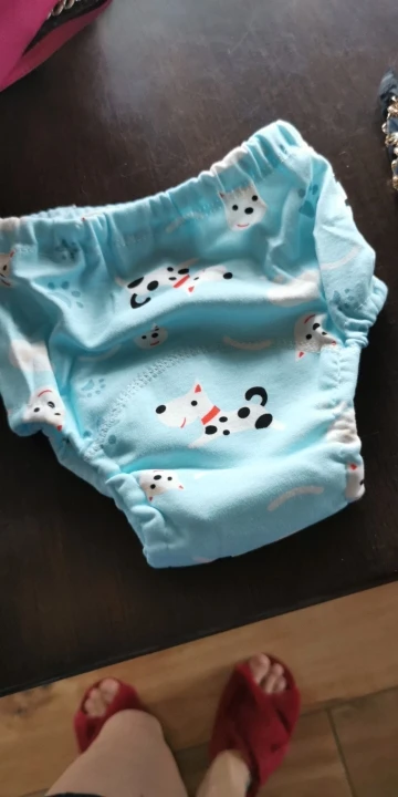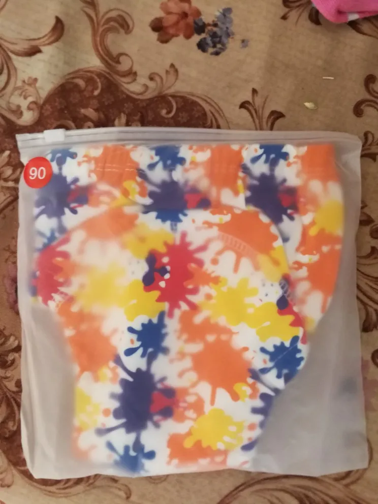 Трусики хорошие, приятные на ощупь, яркие, без запаха, внутри клеёночка между хлопковыми слоями, впитывают достаточно много, но у нас протекают, с размером прогадала. Все трусики в отдельном пакетике. Заказала на ребенка 2 года, вес 12,5 и рост 92, нам большие. Обхват бёдер 47,5 и обхват ноги 26,5. Закажу на размер меньше.