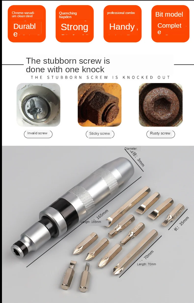 Профессиональный портативный ударный отвертка Набор отверток для ослабления замороженных болтов и упорных крепежных элементов с нескользящей ручкой