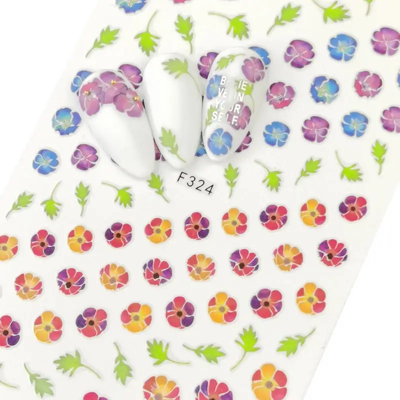 1 лист, 3D наклейки для ногтей, клейкие наклейки, цветы, листья, геометрия, фрукты, десерт, дизайны, слайдеры, тату, маникюрные украшения