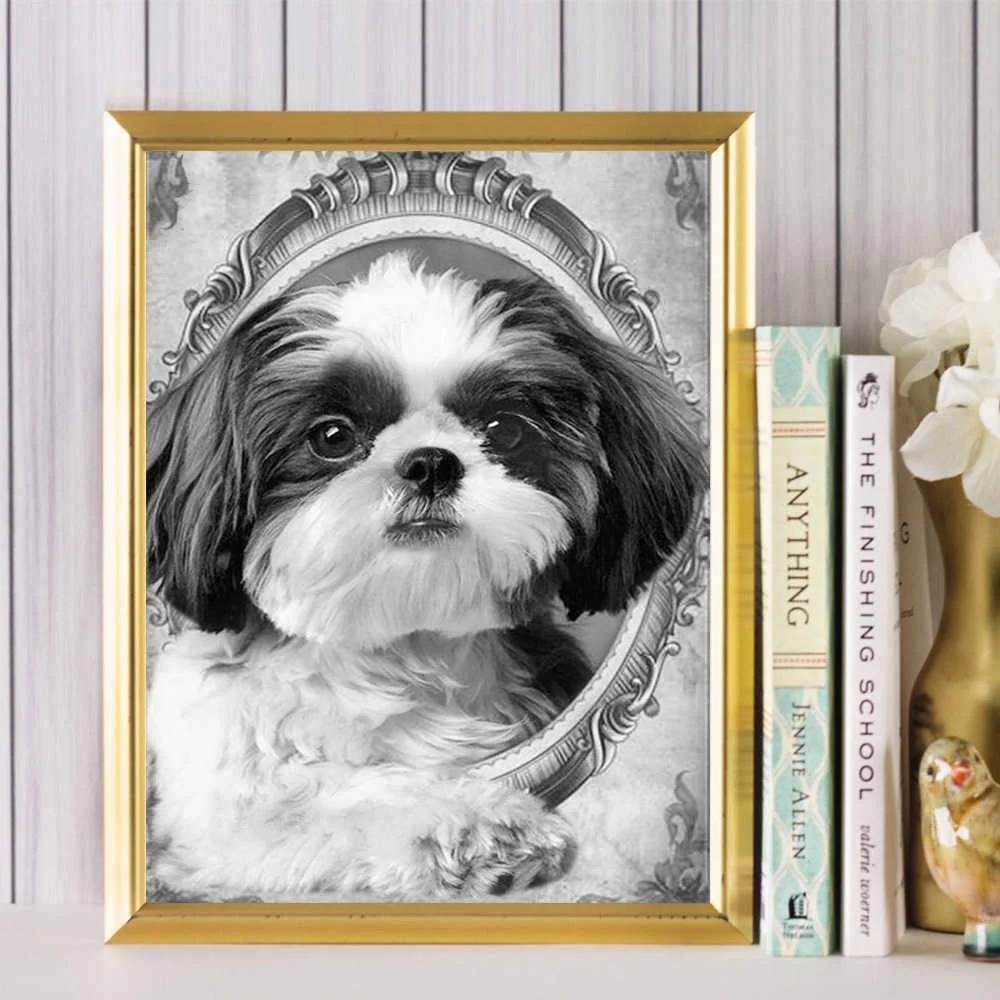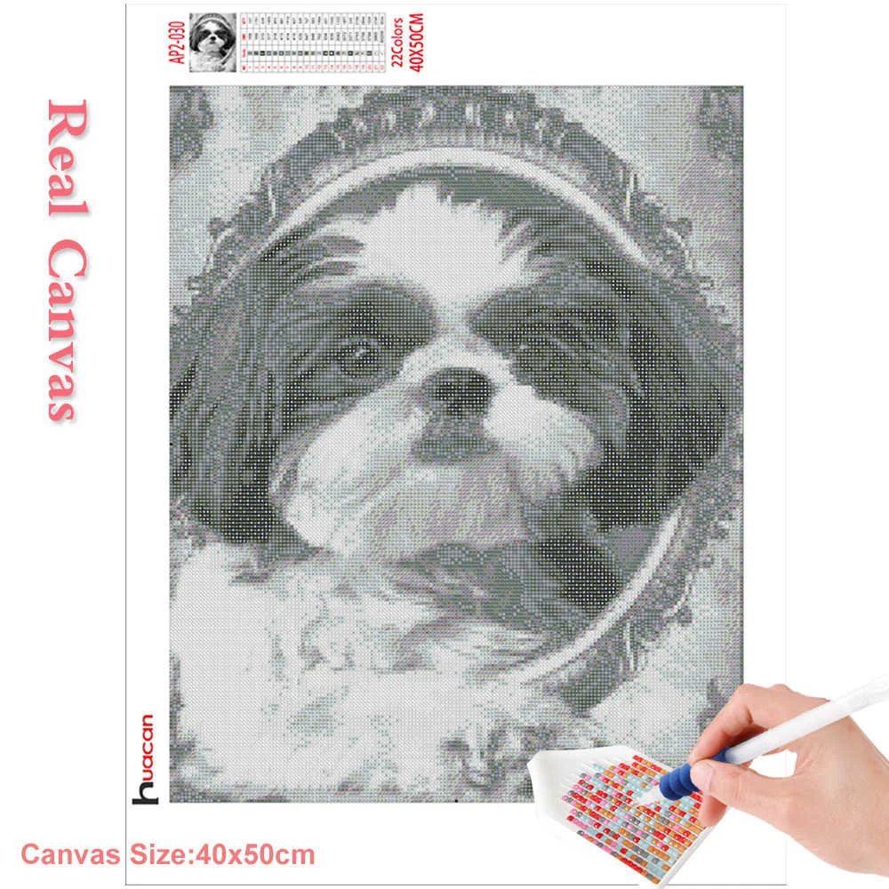 Huacan 5d алмазная вышивка собаки мозаика Черный и белый животные картины из страз декор для дома