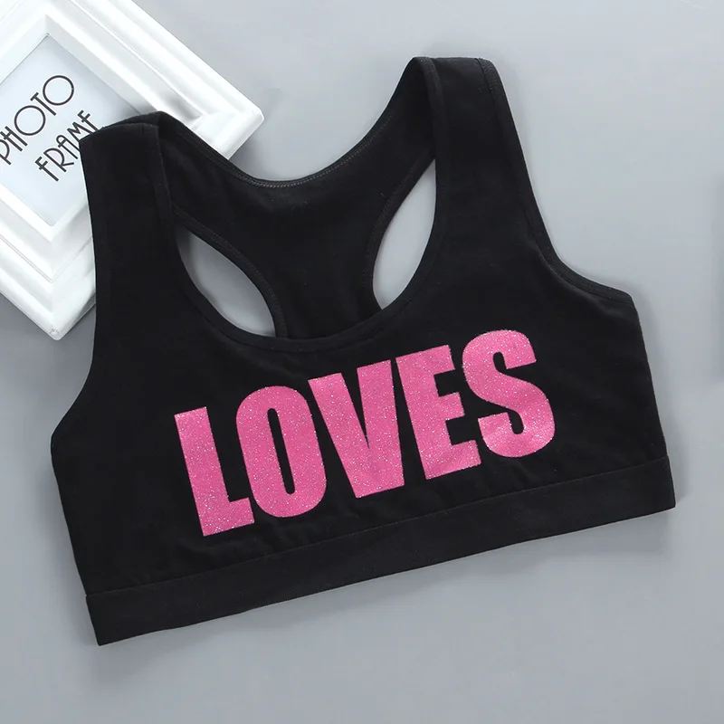 Спортивный бюстгальтер с буквами, бюстгальтер для девочек, нижнее белье, нижнее белье для детей, подростков, студентов, хлопковые двухслойные однотонные подушечки
