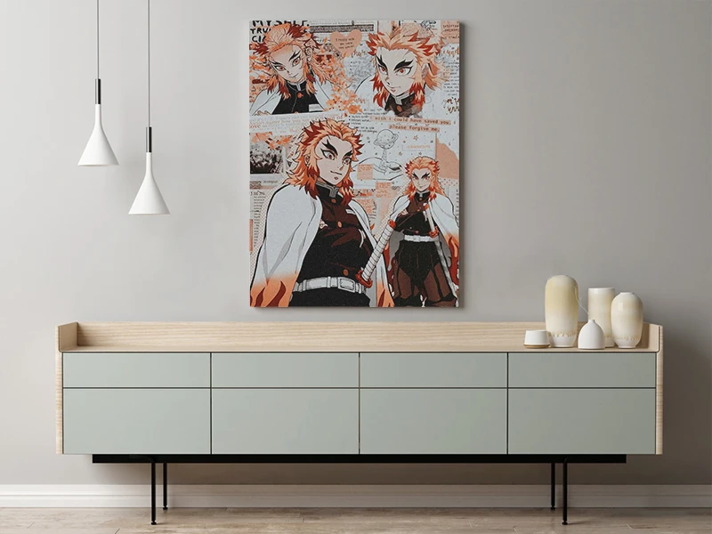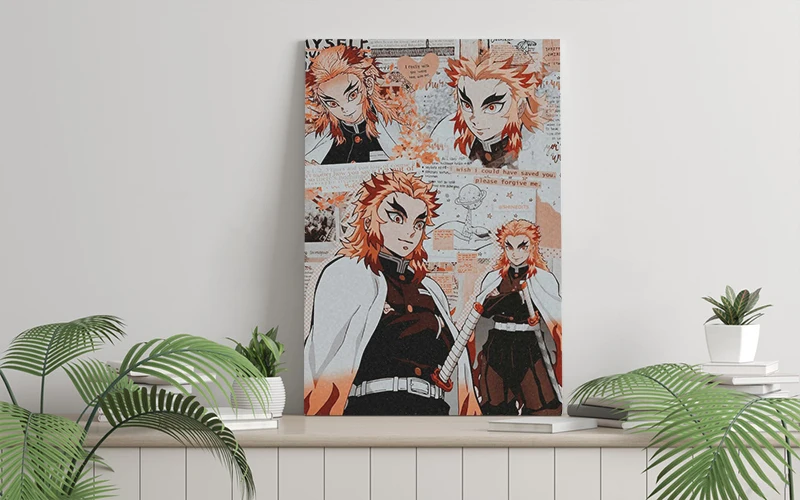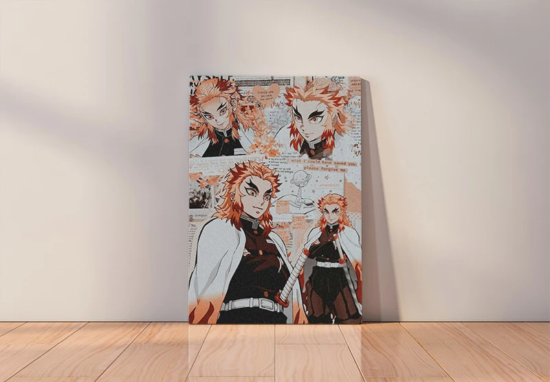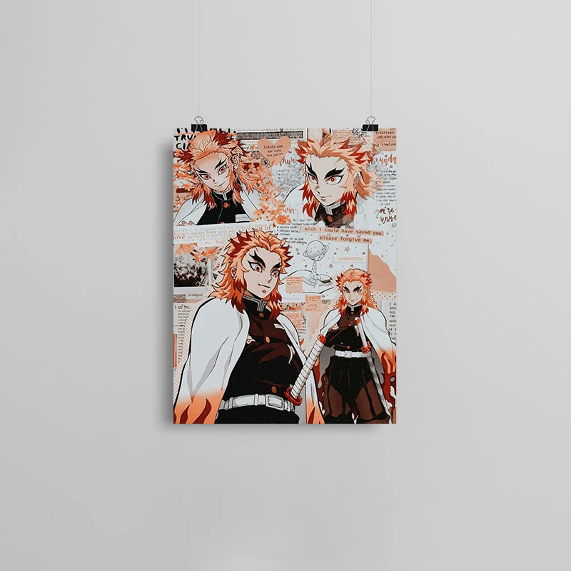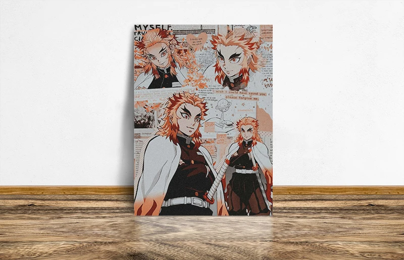 Постер в деревянной рамке с аниме киоюру ренгоку киметсу no Yaiba, настенное художественное украшение для кабинета, украшение для дома, принты