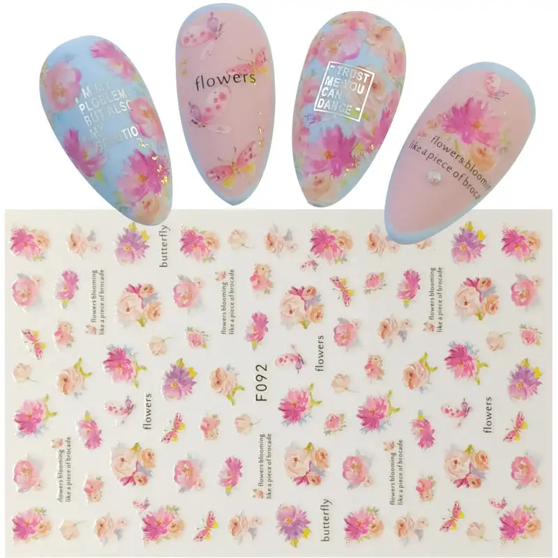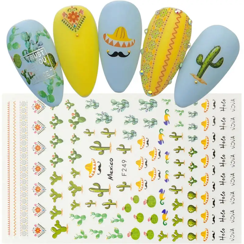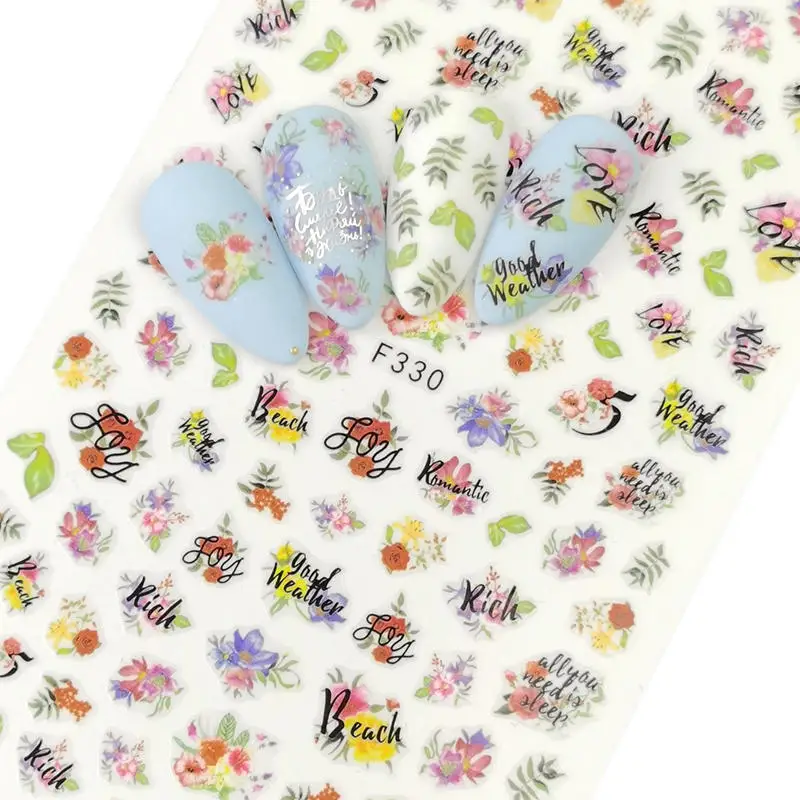 1 лист, 3D наклейки для ногтей, клейкие наклейки, цветы, листья, геометрия, фрукты, десерт, дизайны, слайдеры, тату, маникюрные украшения