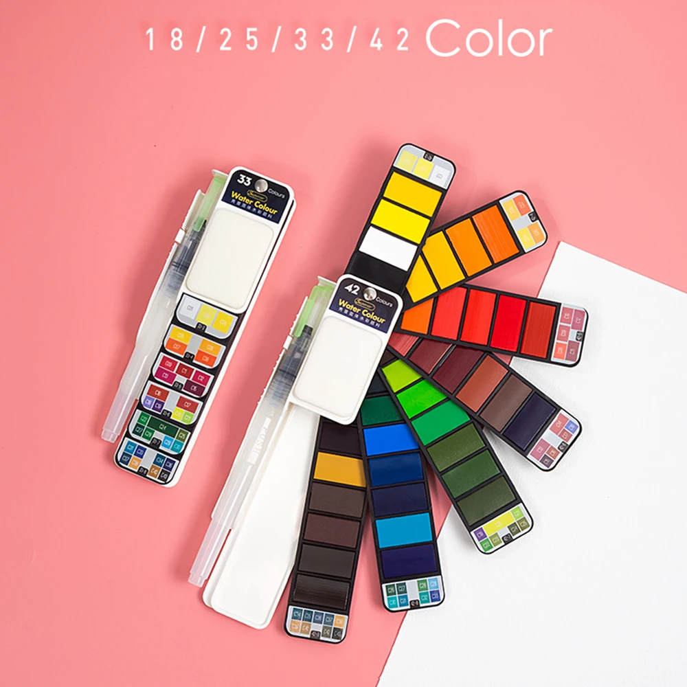 18/25/33/42 цветов Коробка твердая Акварельная краска портативная профессиональная краска Складная граффити твердая набор акварельных красок Комплектация: 1 комплектТип: краски водного цветаСреда рисования: холст/бумагаЦвет: как показаноДоступные люди: дети и студенты, новички, рисунок художникаВес: 109 г/128 г/151 г/181 г