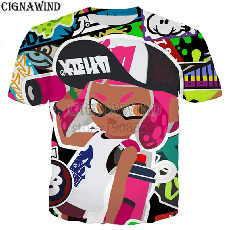 Новые забавные футболки для мужчин и женщин, футболка с 3D принтом игры Splatoon, Повседневная футболка в стиле Харадзюку, уличные Топы