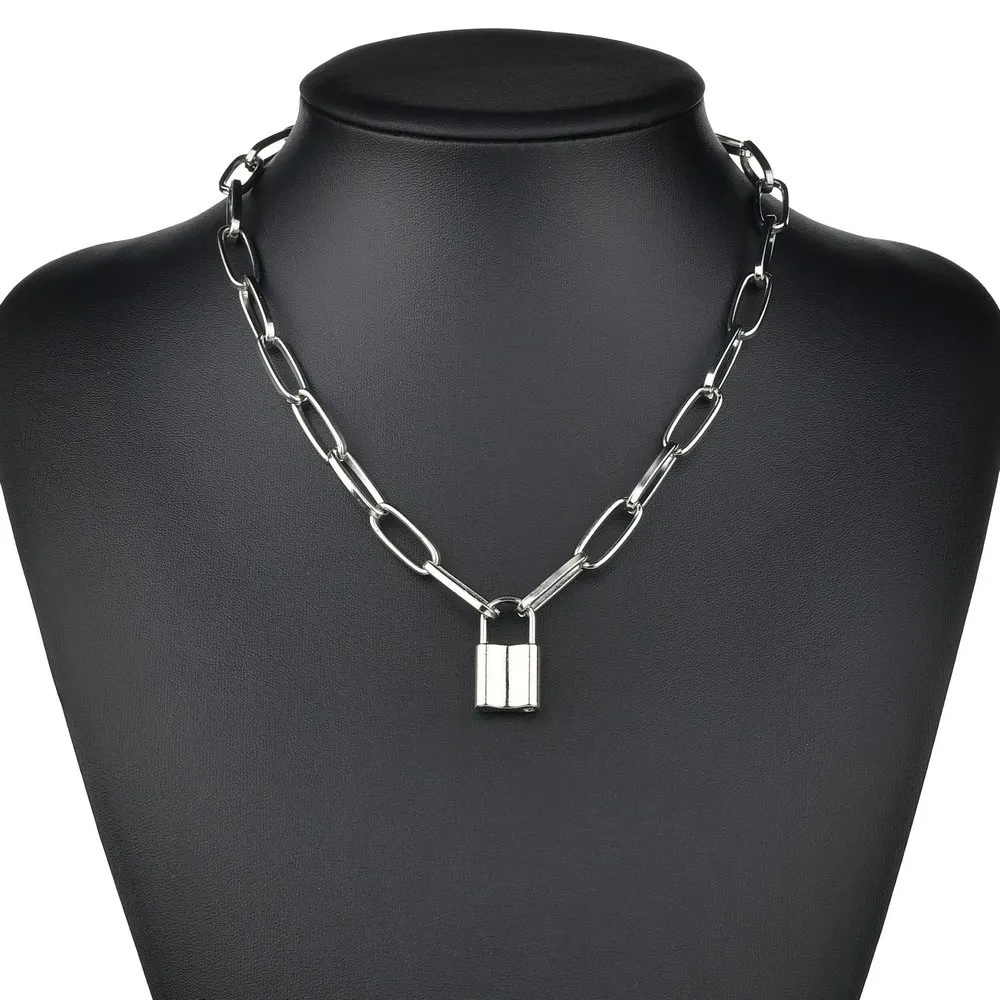Модные панковские ожерелья с замком, Золотая цепочка, подвеска с висячим замком, ожерелье для женщин, модные массивные ювелирные изделия