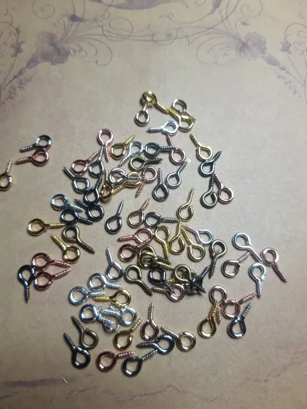 Штифты-петли с резьбой, маленькие, золотистые, Родиевые, 200 шт.