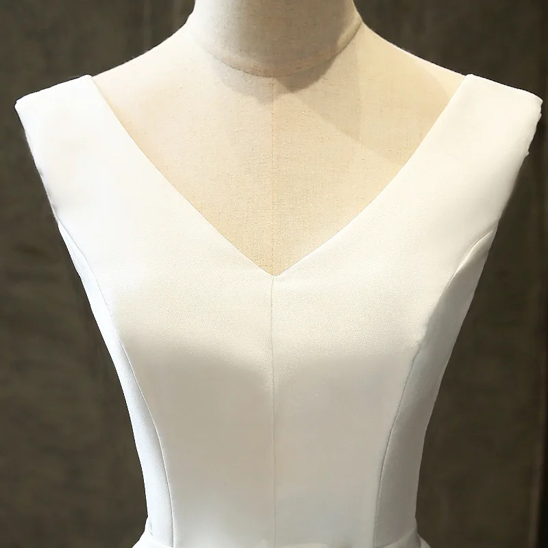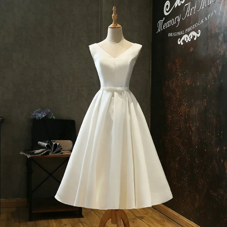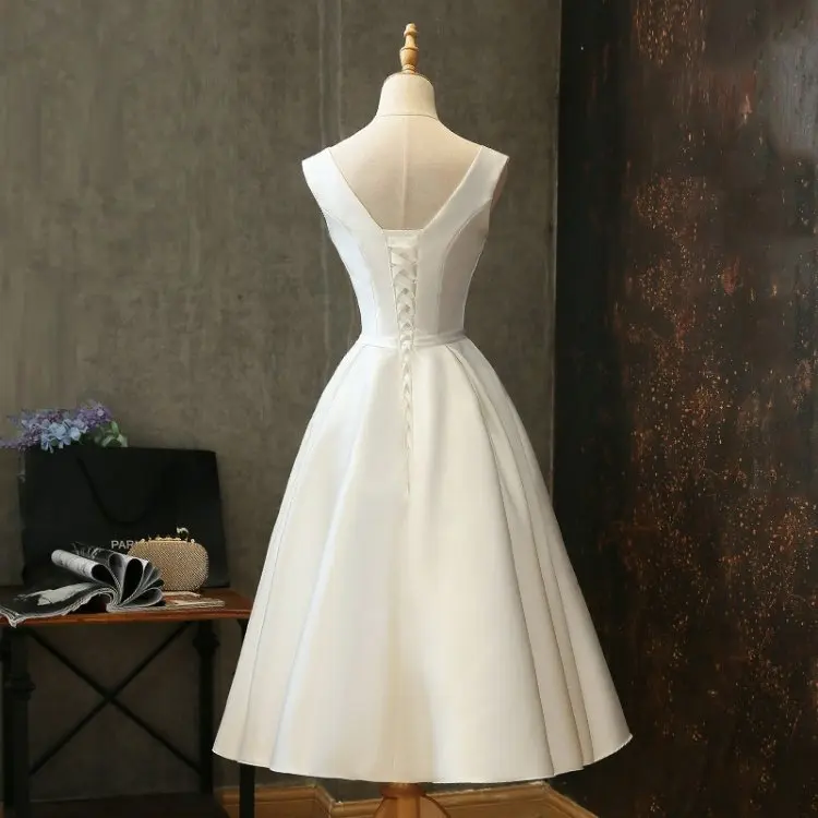Женские Короткие вечерние платье размера плюс с v-образным вырезом без рукавов вечернее атласное выпускное платье Белые Свадебные вечерние платье коктейльные платья