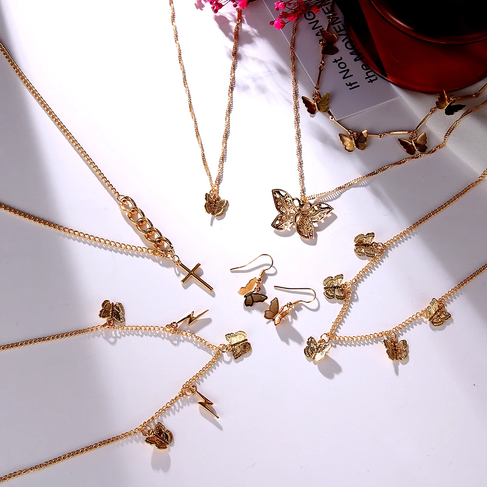Богемное ожерелье с бабочкой kpop, Золотая ключица, 2020, женская м...