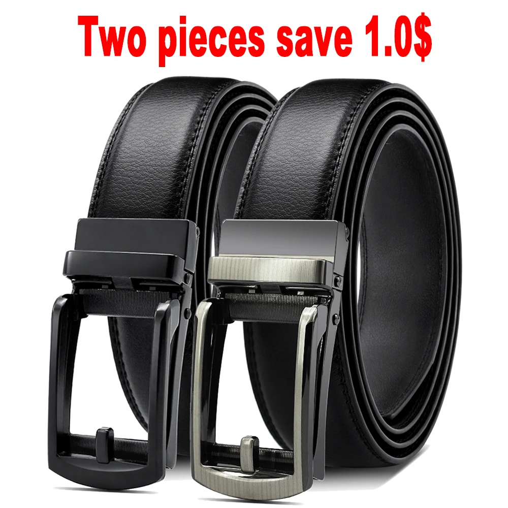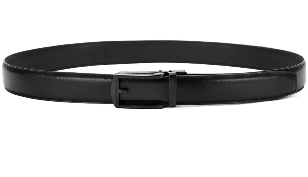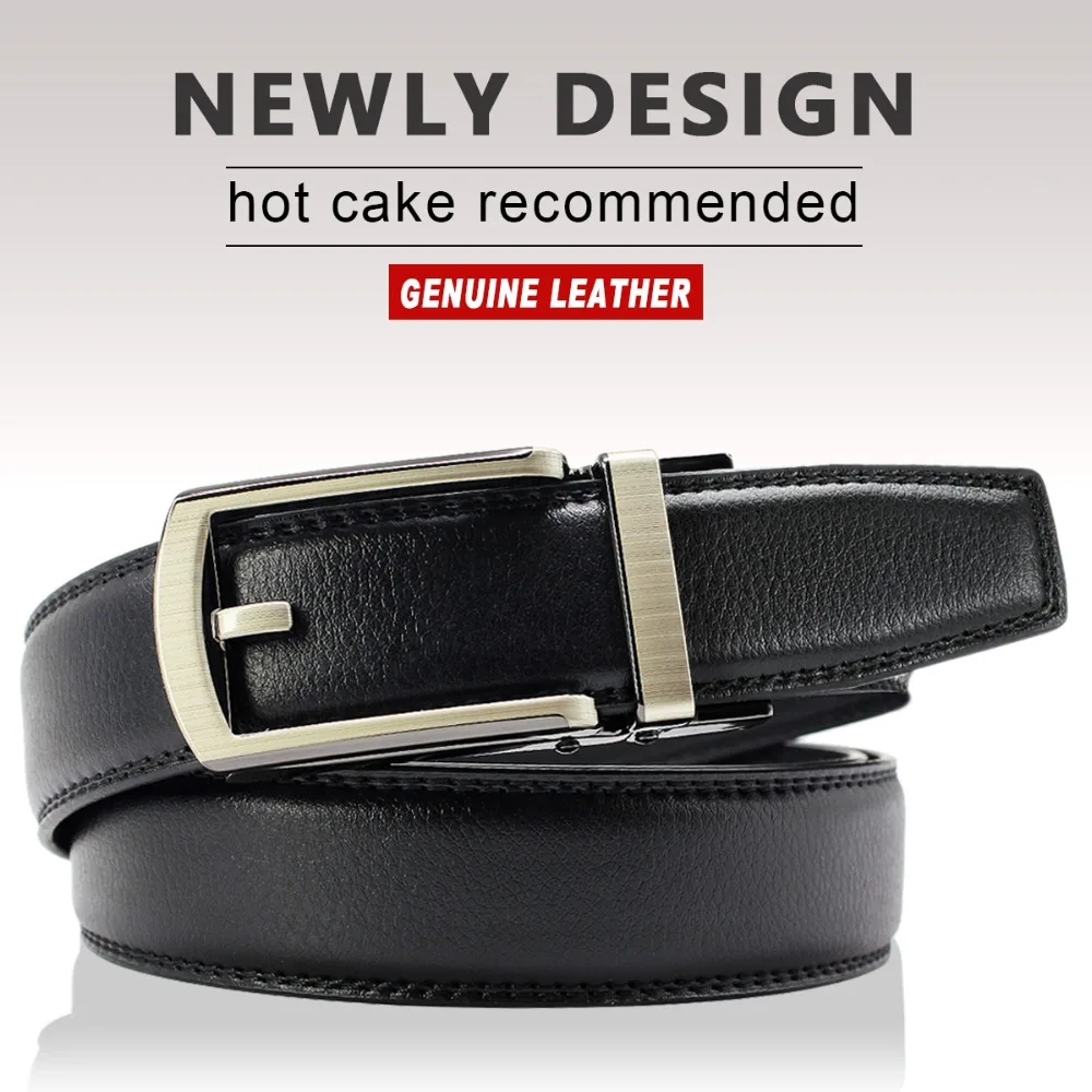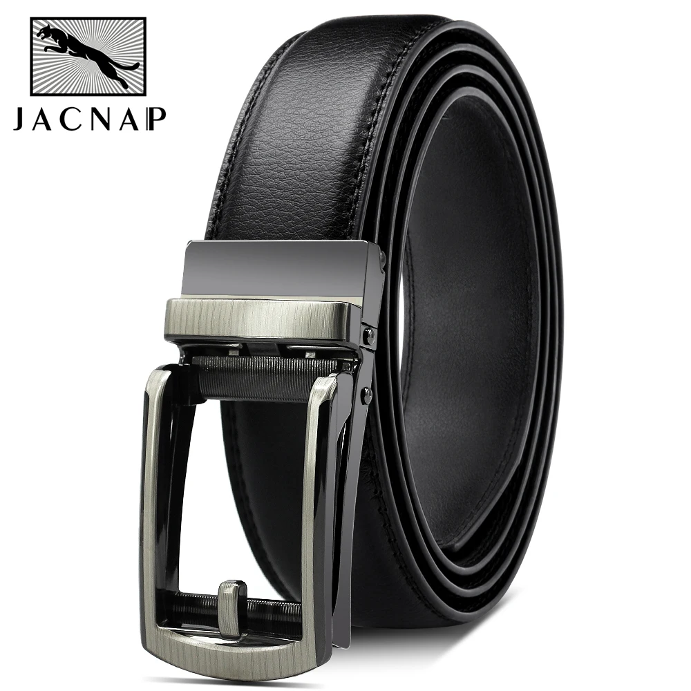Ремень JACNAIP мужской из натуральной кожи, пояс с автоматической пряжкой, чёрный
