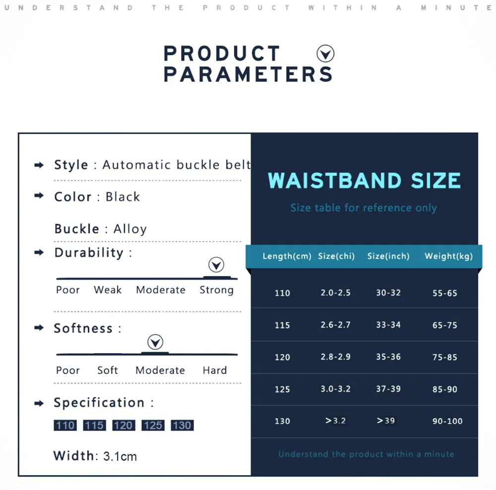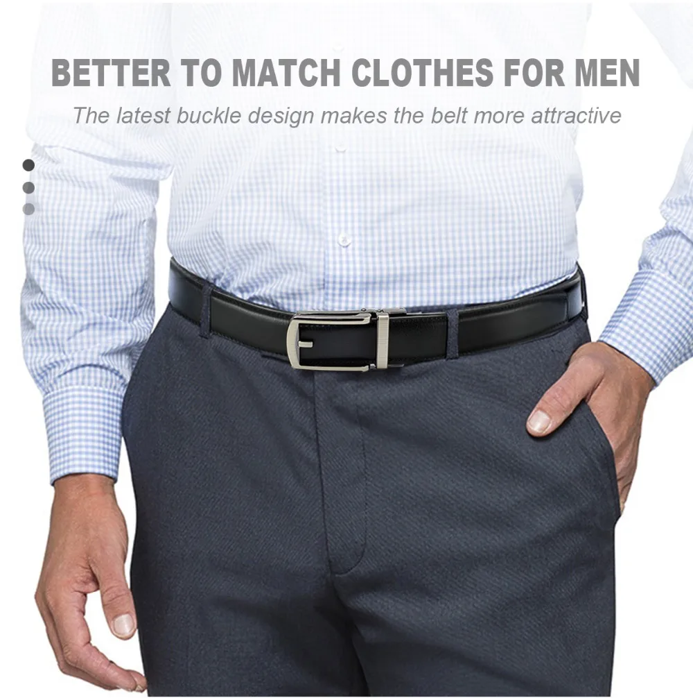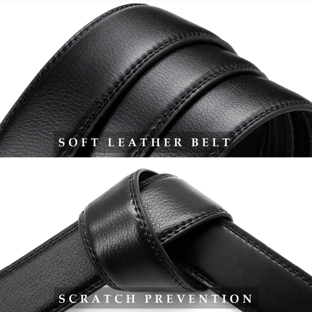 Ремень JACNAIP мужской из натуральной кожи, пояс с автоматической пряжкой, чёрный