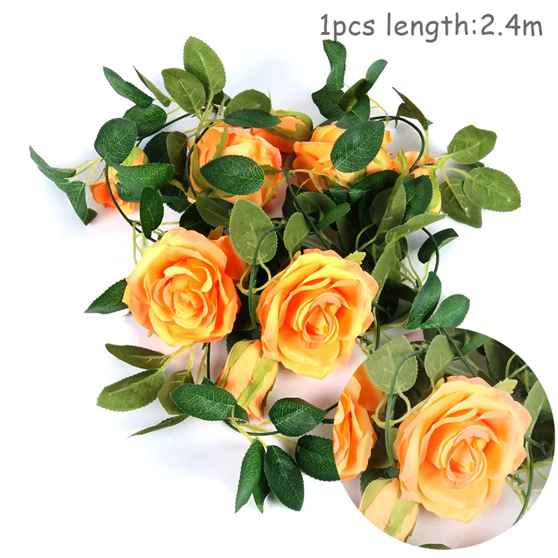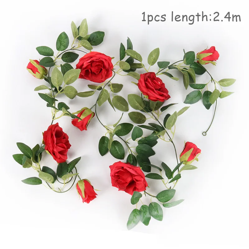 2,4 м шелк Поддельные розы венок из виноградных листьев Искусственные цветы растения для дома сад Ремесло Свадьба искусственная Роза лоза висит Роза Плющ