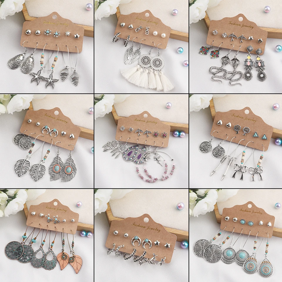 Набор женских сережек в стиле бохо, 6 пар, разные пряди ческие серьги, 2020