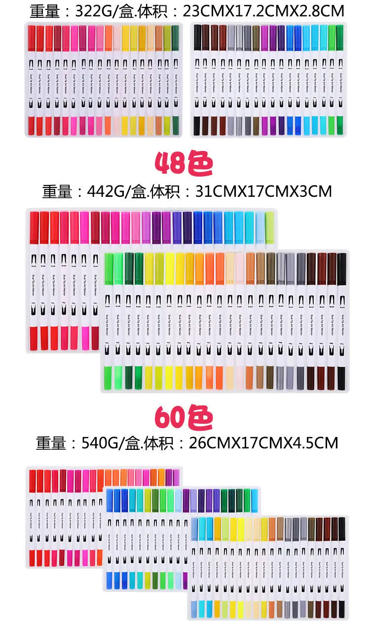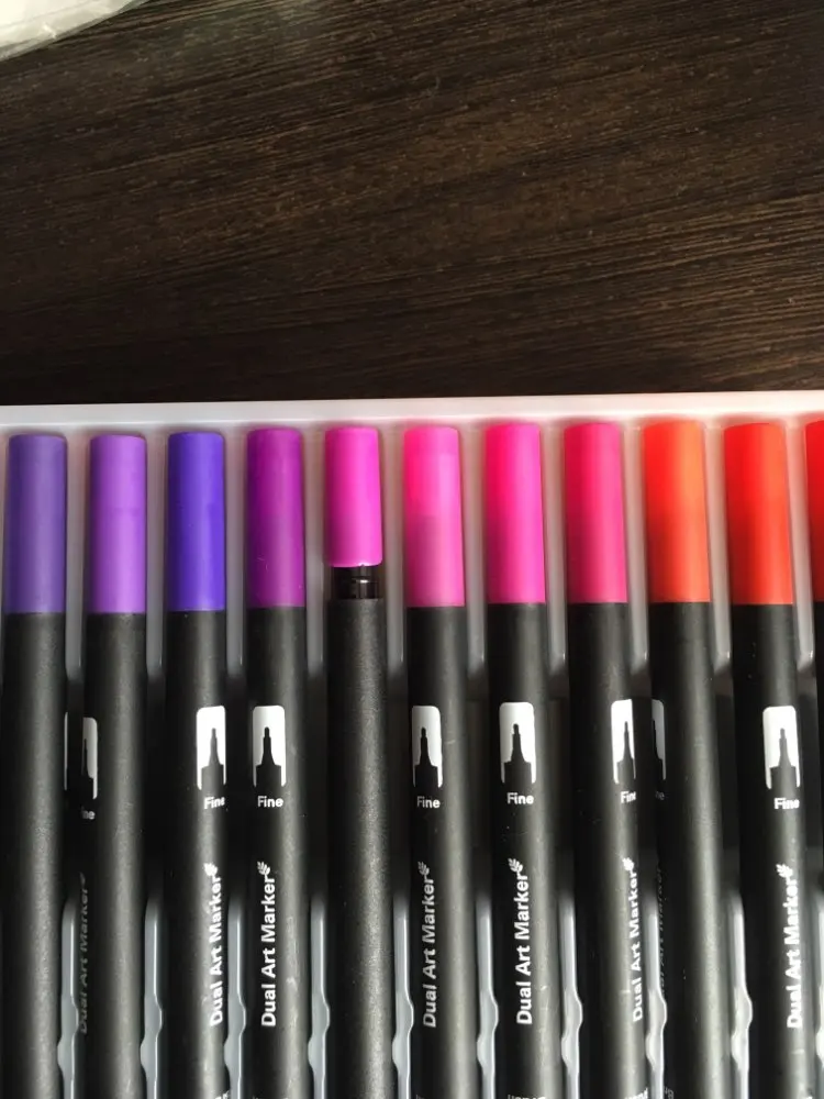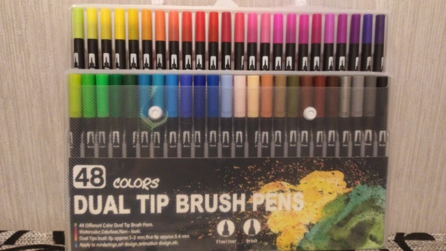 Один из 48 маркеров оказался бракованным. Некоторые брашпены мягкие и хорошо гнуться, а некоторые очень жёсткие.