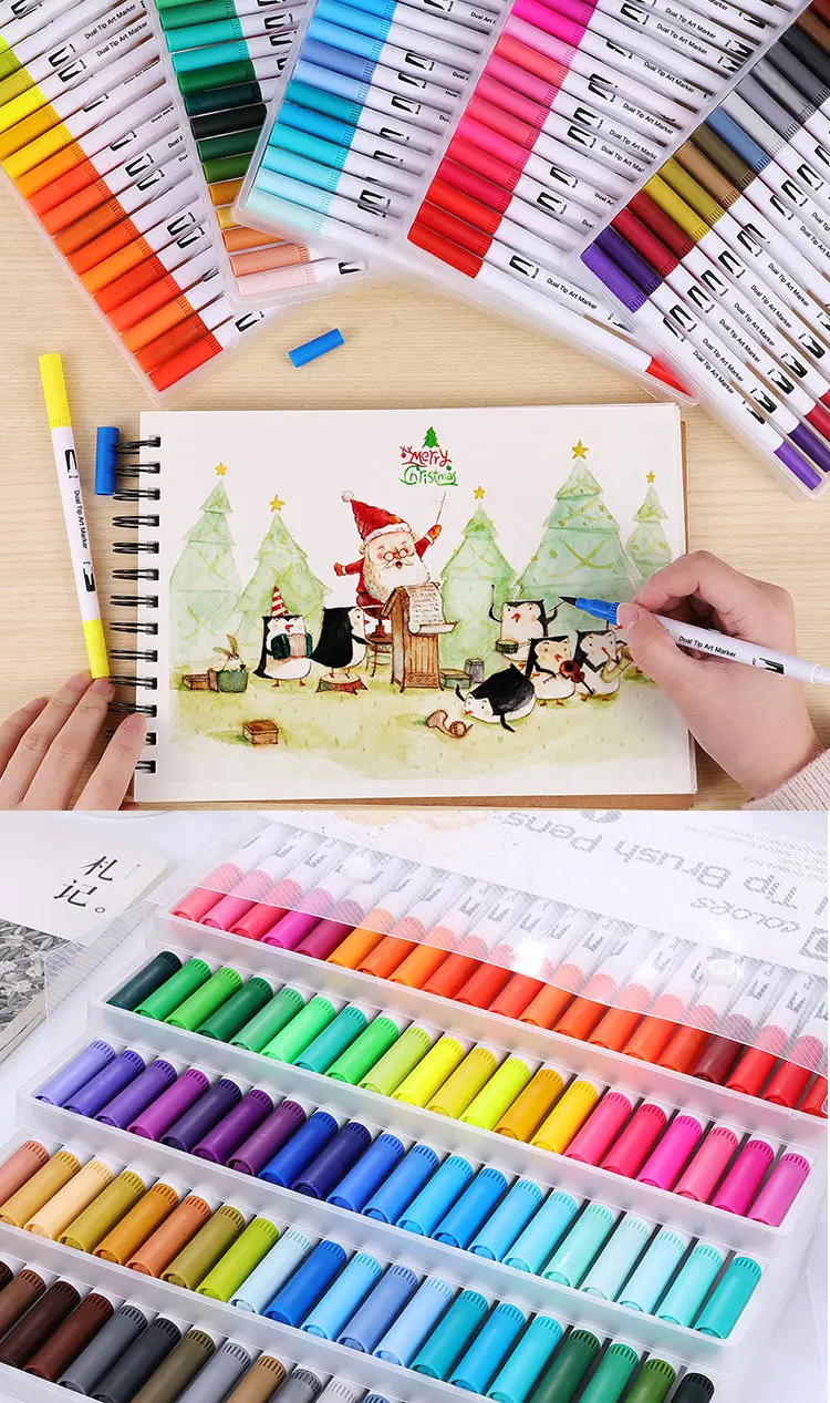 Шикарный набор! Отличные цвета! И очень супер быстрая доставка! Заказывайте, не пожалеете! Ребёнок в восторге . С одной стороны очень тонкий фломастер, с другой - кисть, если сильнее нажать. Доставка курьером, СДЭКом