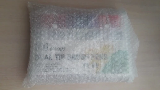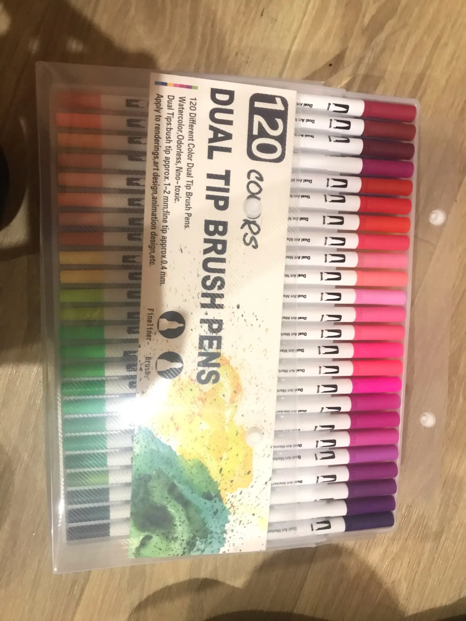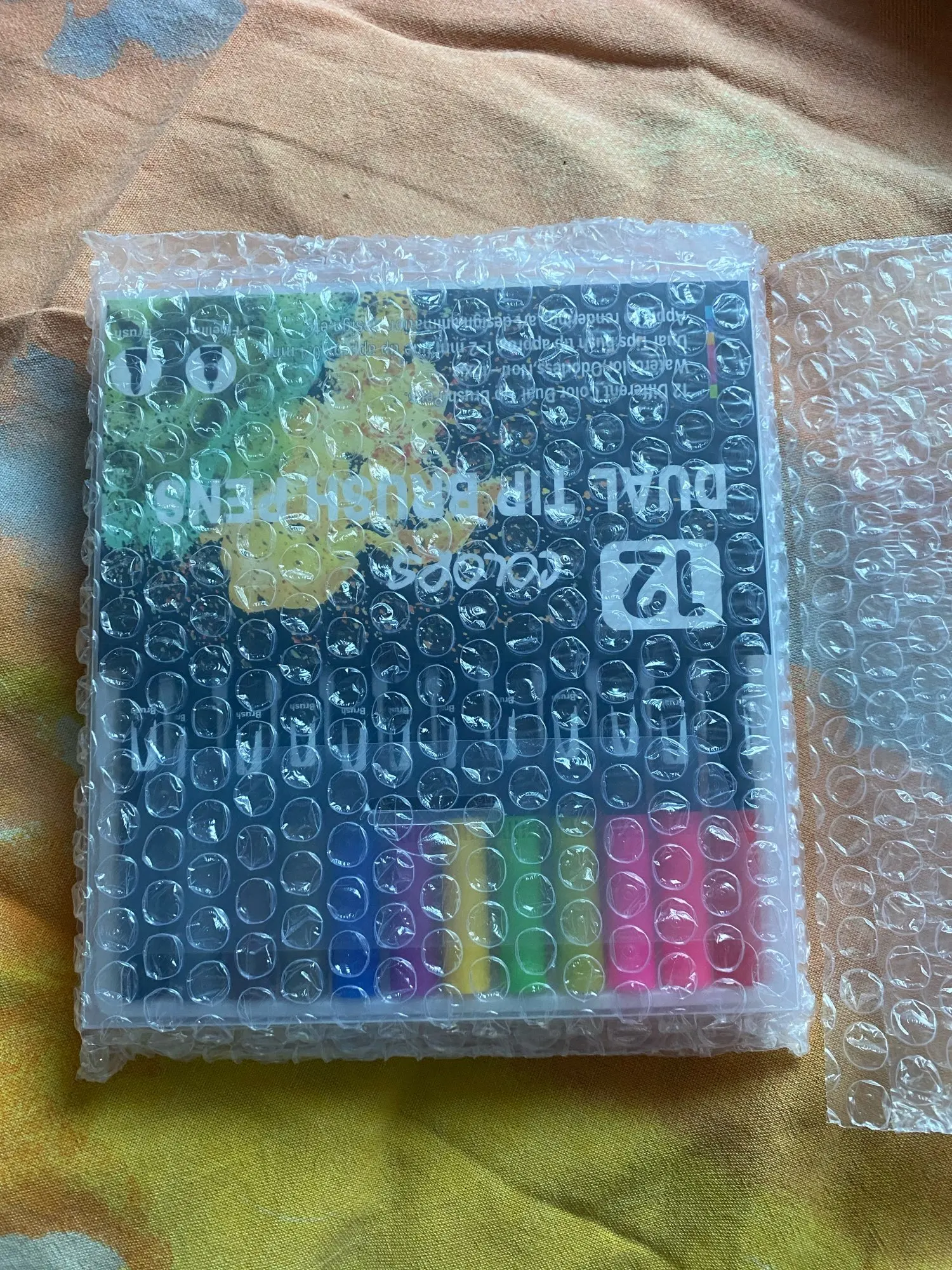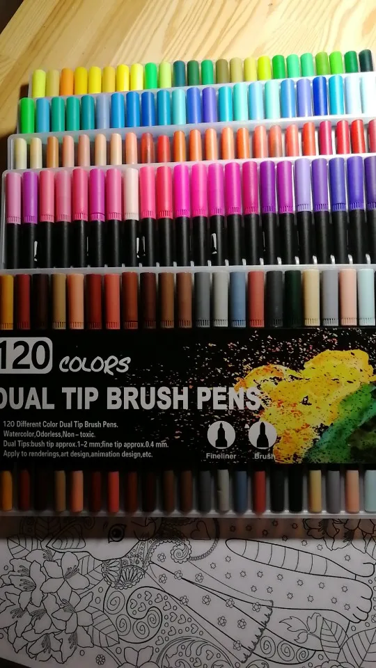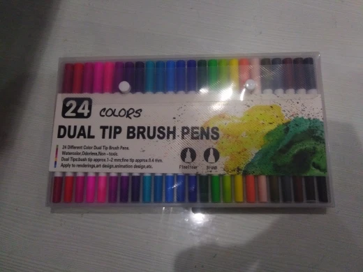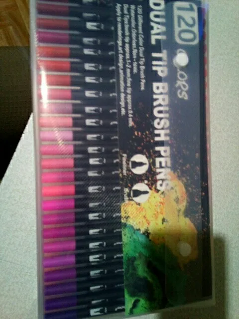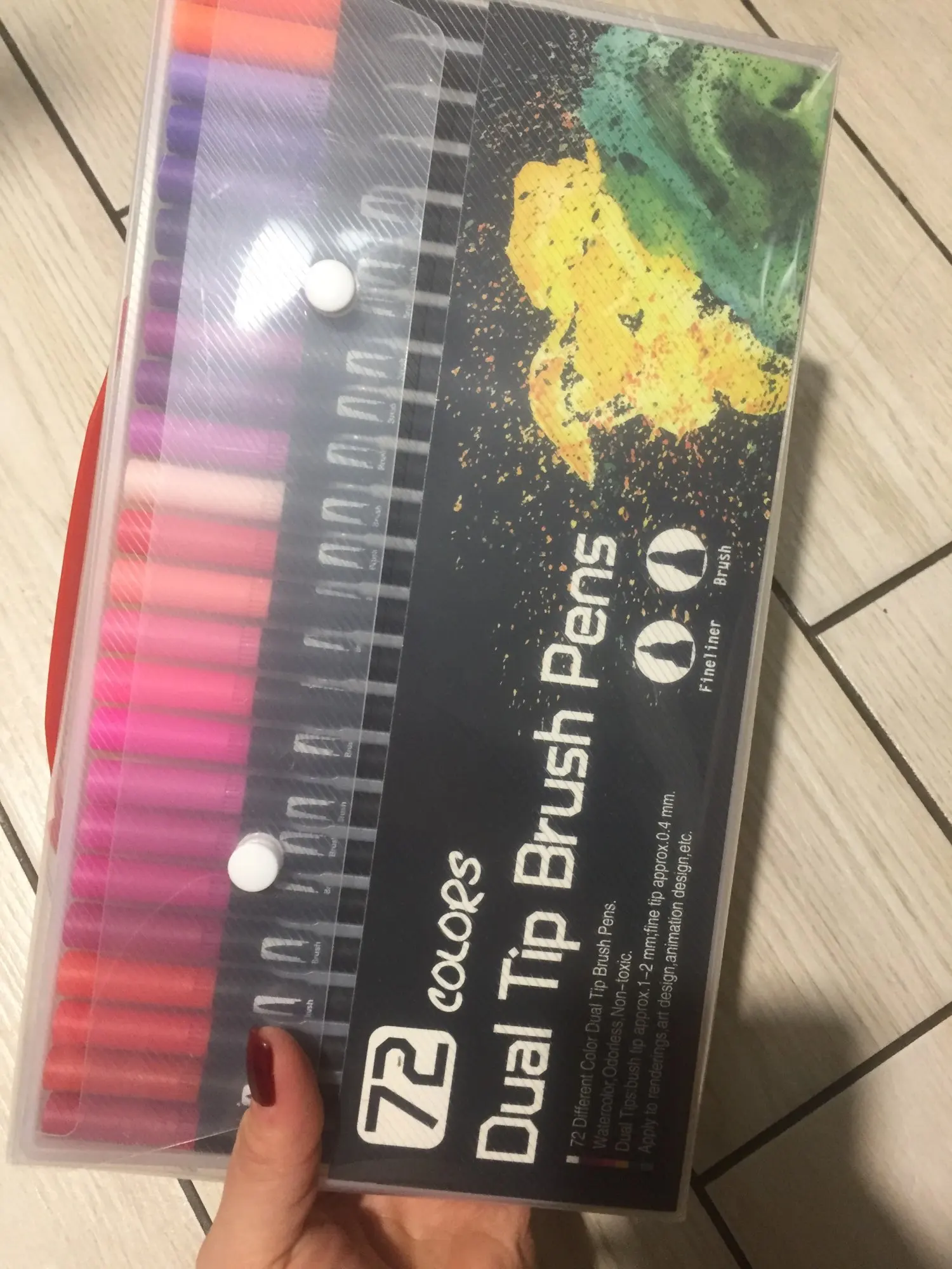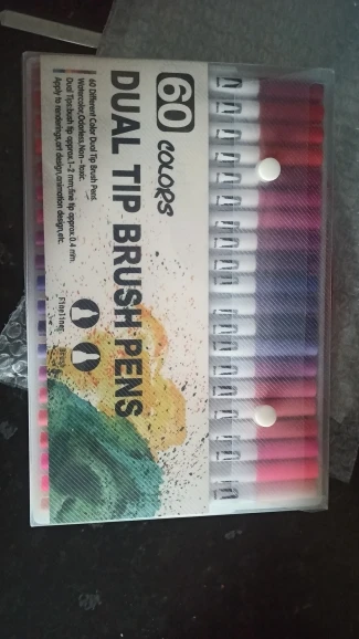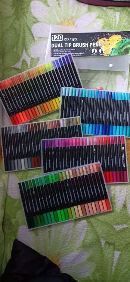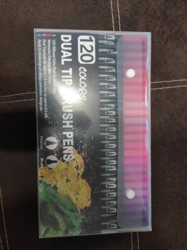 Посылка прибыла сегодня. Он был правильно упакован .. Хорошо упакован. Красивый продукт. Все пишут. Ручки имеют яркие цвета. Я только замечал, что в одной из ручек есть что-то на кисти. Выглядит как грязь. Не уверен, что это такое. В целом я очень доволен. Спасибо продавцу!